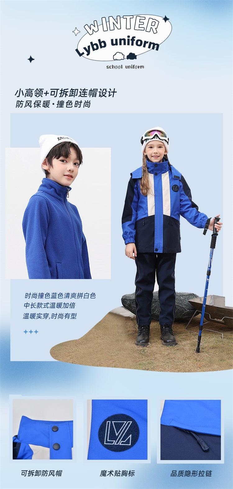 Chaqueta de uniforme escolar de la Escuela Primaria Lanyang Beibei, conjunto de tres piezas, otoño e invierno cálido, ropa de jardín, deportes, ropa de clase de secundaria, moda, entrega