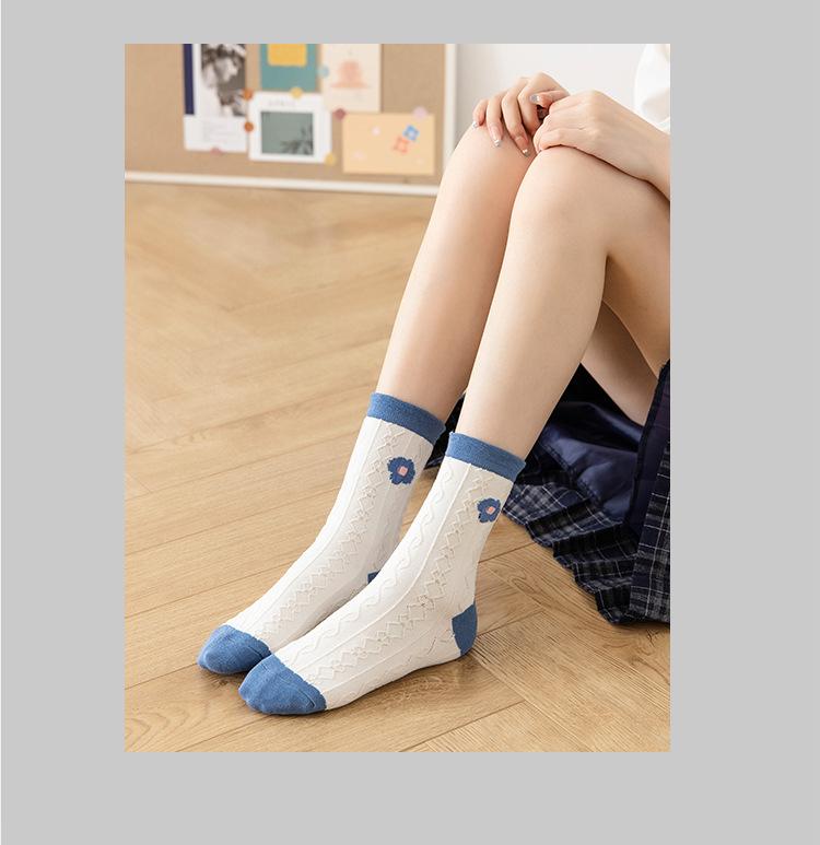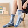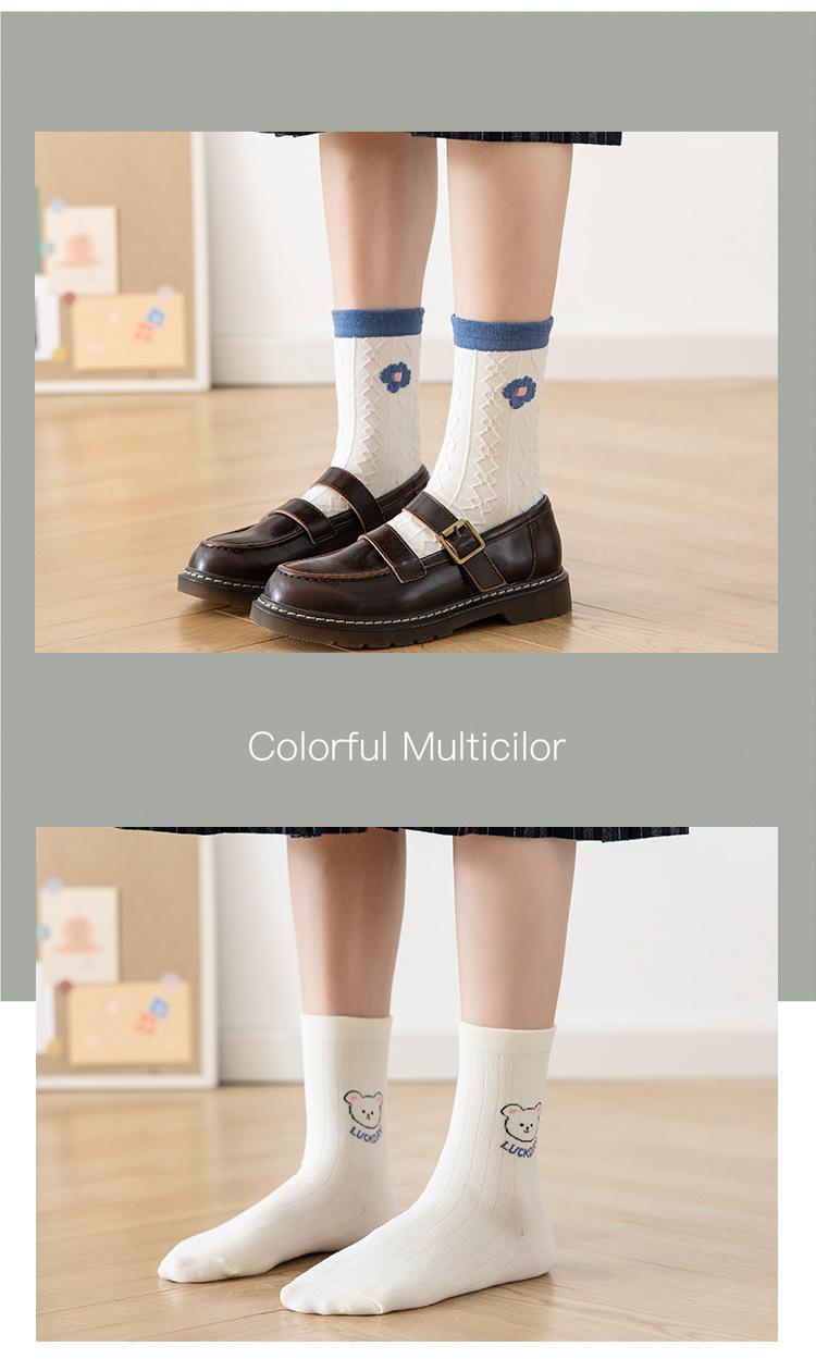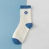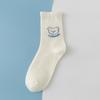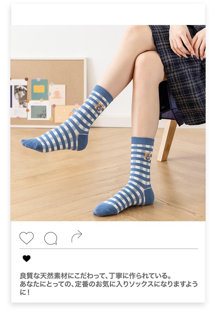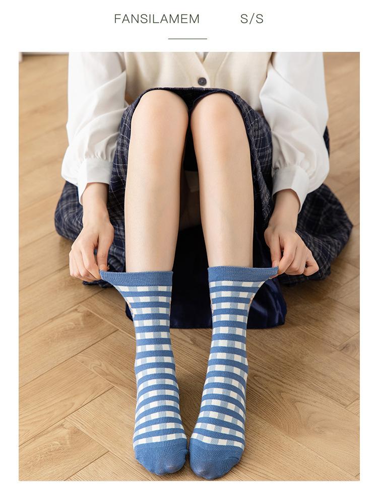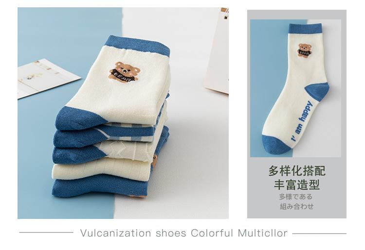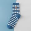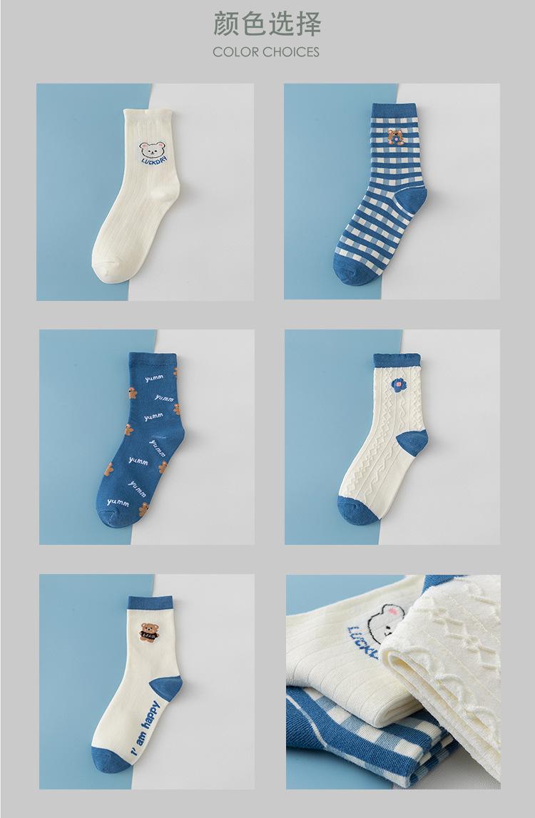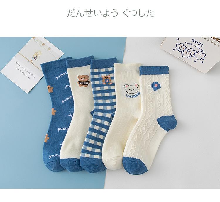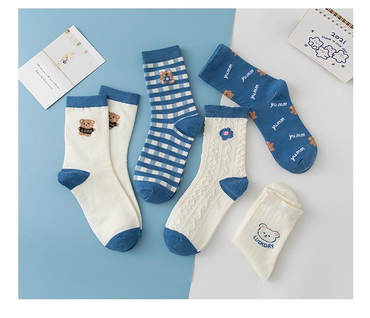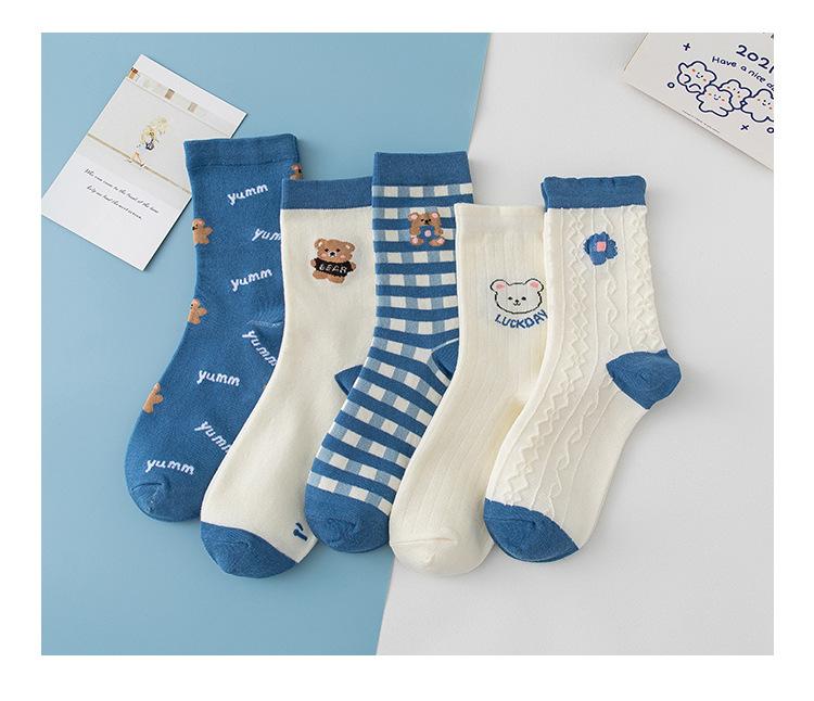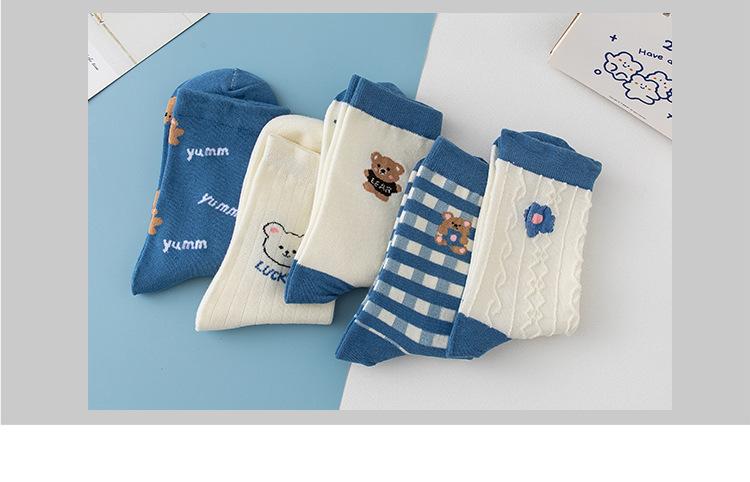 Calcetines midi de oso azul para mujer, de otoño e invierno, a cuadros, de moda, transpirables, de algodón.