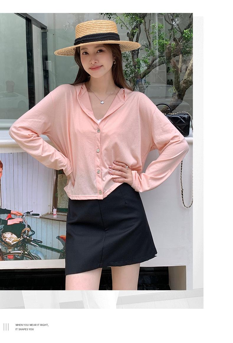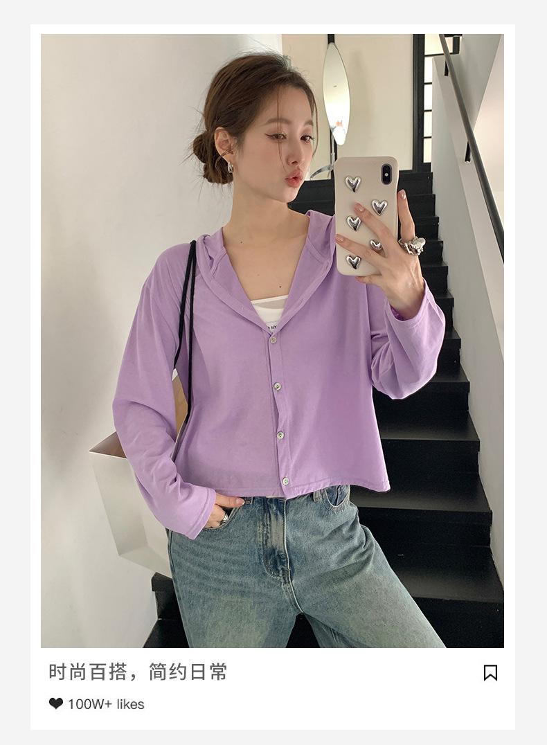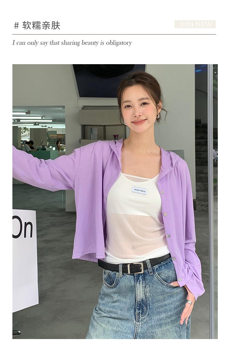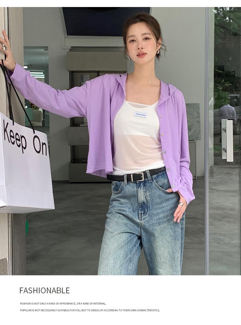 Cárdigan de punto con botones para mujer, de algodón flameado, holgado y combinable, de manga larga, con capucha y protector solar, para primavera y verano
