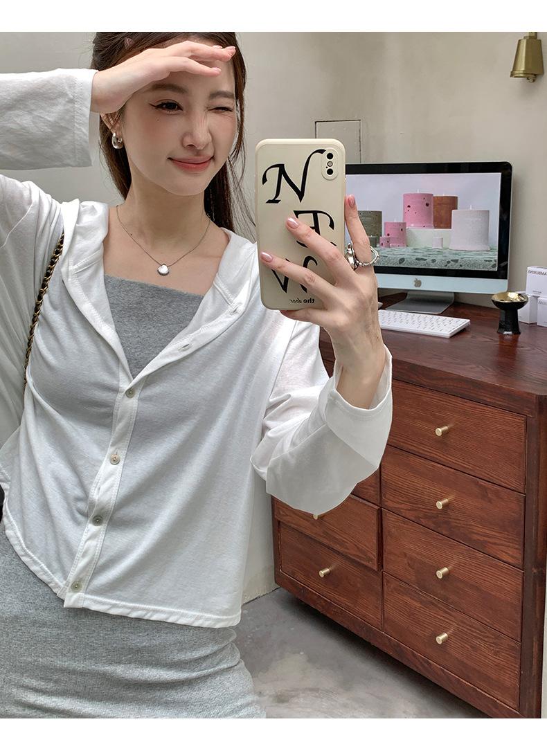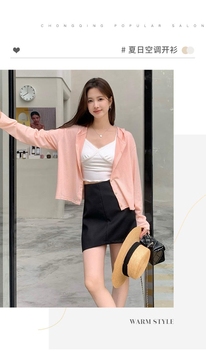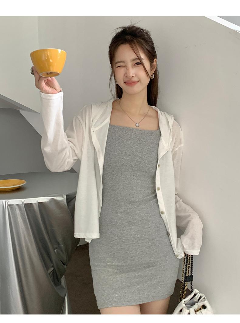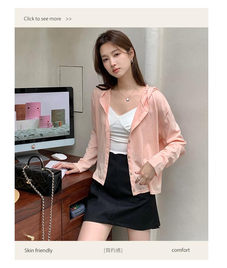 Cárdigan de punto con botones para mujer, de algodón flameado, holgado y combinable, de manga larga, con capucha y protector solar, para primavera y verano