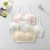 Chaleco de verano para niña, sin costuras, elástico, alto, con doble tirante cruzado, para el período de desarrollo, de látex, con posavasos integrado, copa fija para estudiantes femenina.