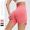 Shorts de Yoga sin Costuras con Cordón Cruzado para Mujer, Cintura Alta, Levanta Caderas, Melocotón Triple, Ajustados, Deportivos, Fitness, Yoga