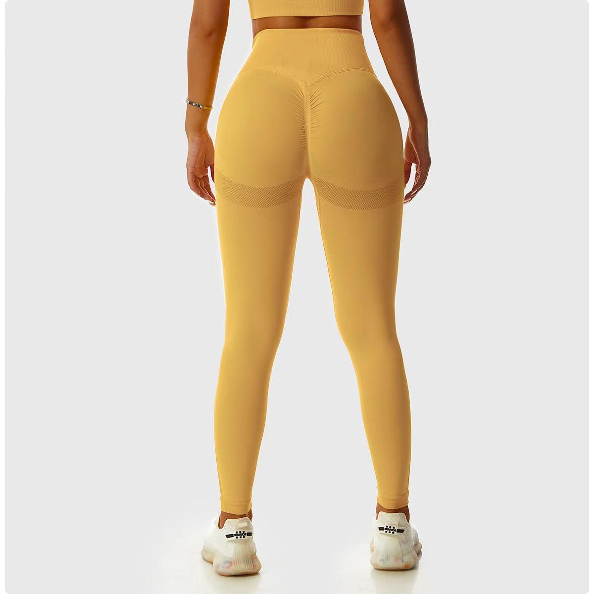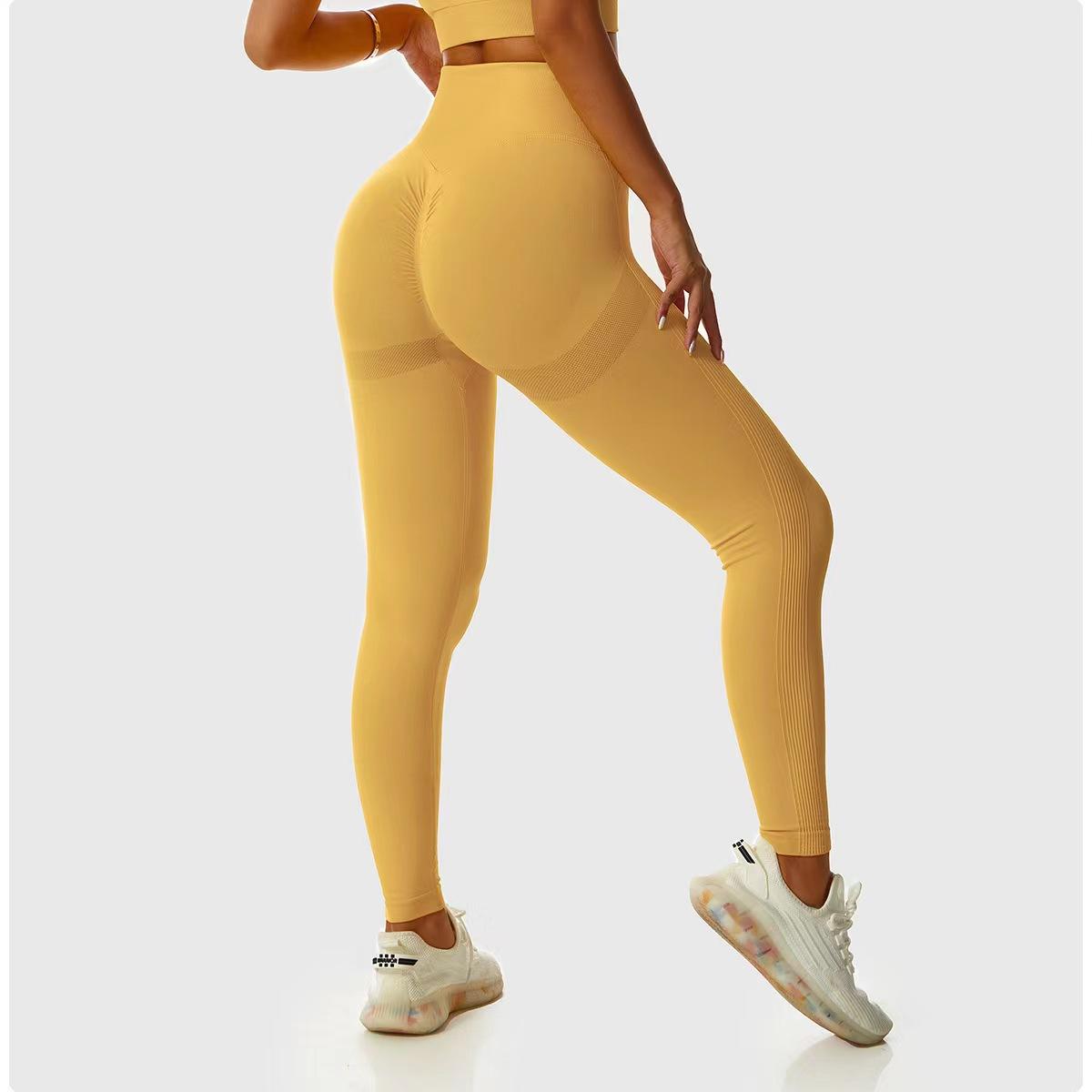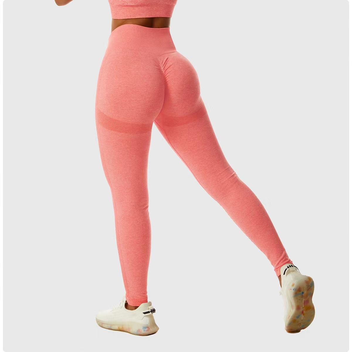Pantalones de Cadera Sin Costuras Populares en Internet de Melocotón Europeos y Americanos Personalizados Transpirables Ajustados de Cintura Alta Ropa de Yoga Deportiva Pantalones Básicos de Fitness para Mujer