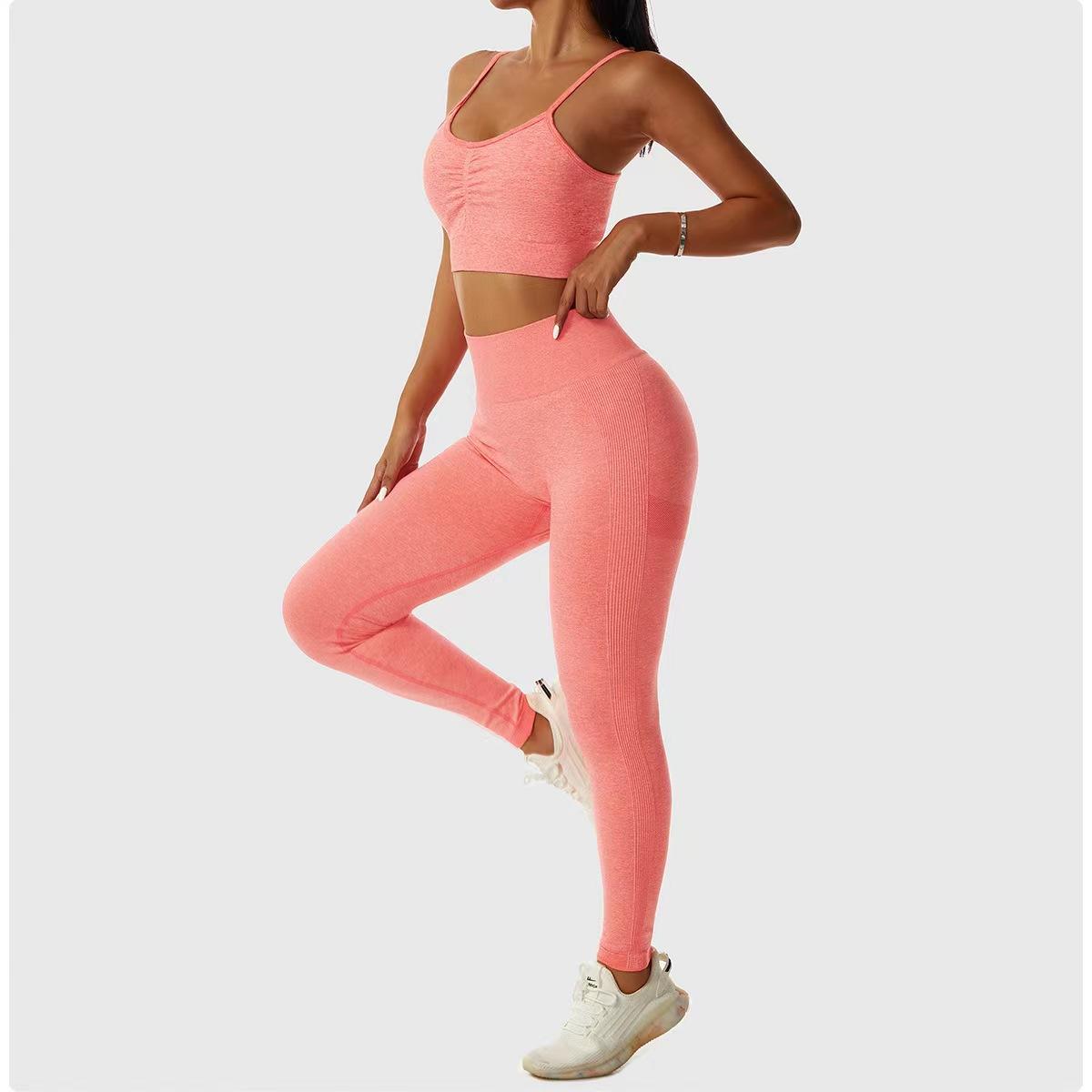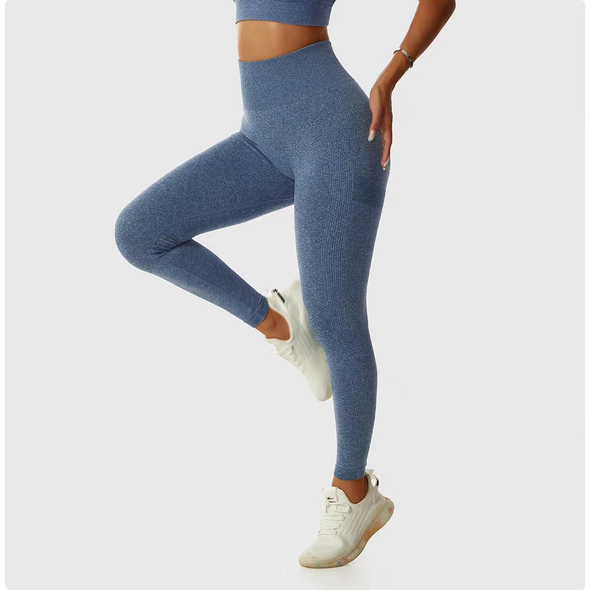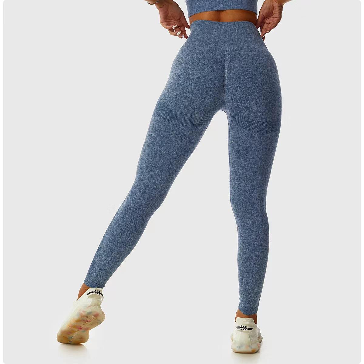 Pantalones de Cadera Sin Costuras Populares en Internet de Melocotón Europeos y Americanos Personalizados Transpirables Ajustados de Cintura Alta Ropa de Yoga Deportiva Pantalones Básicos de Fitness para Mujer