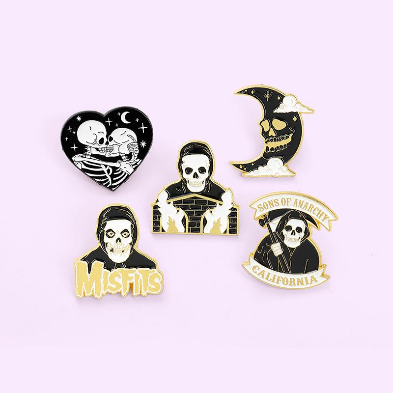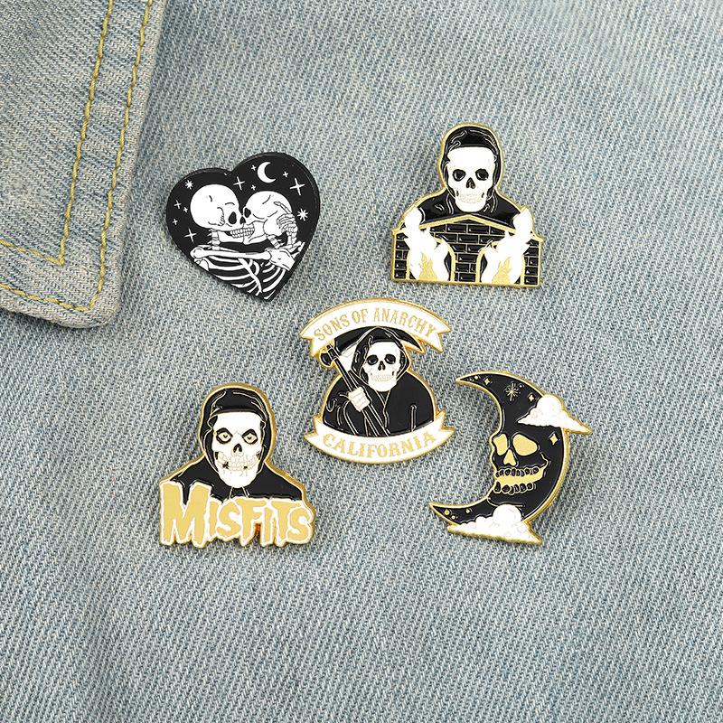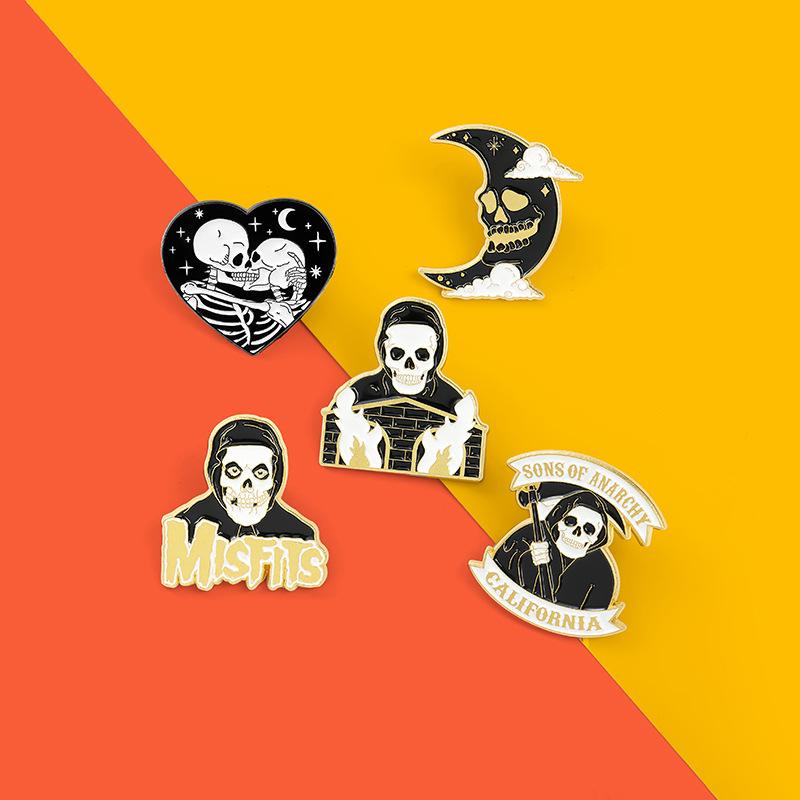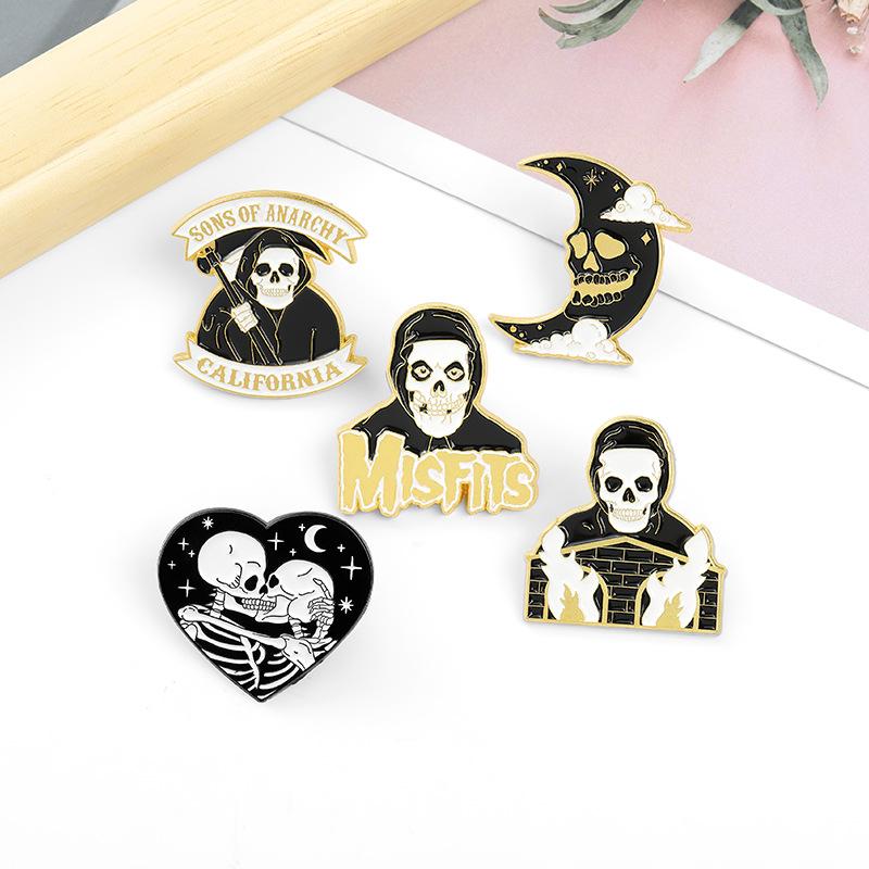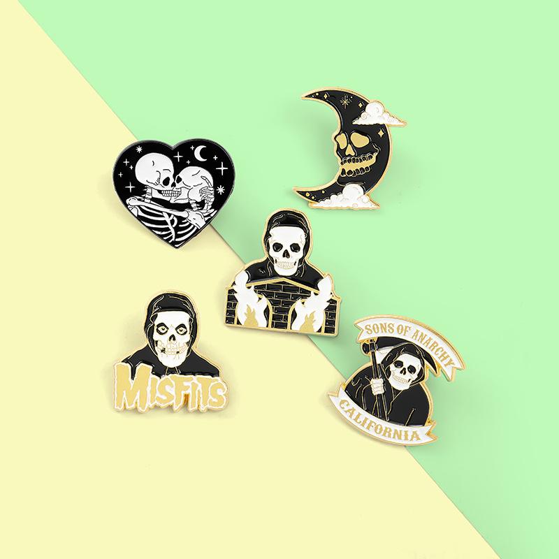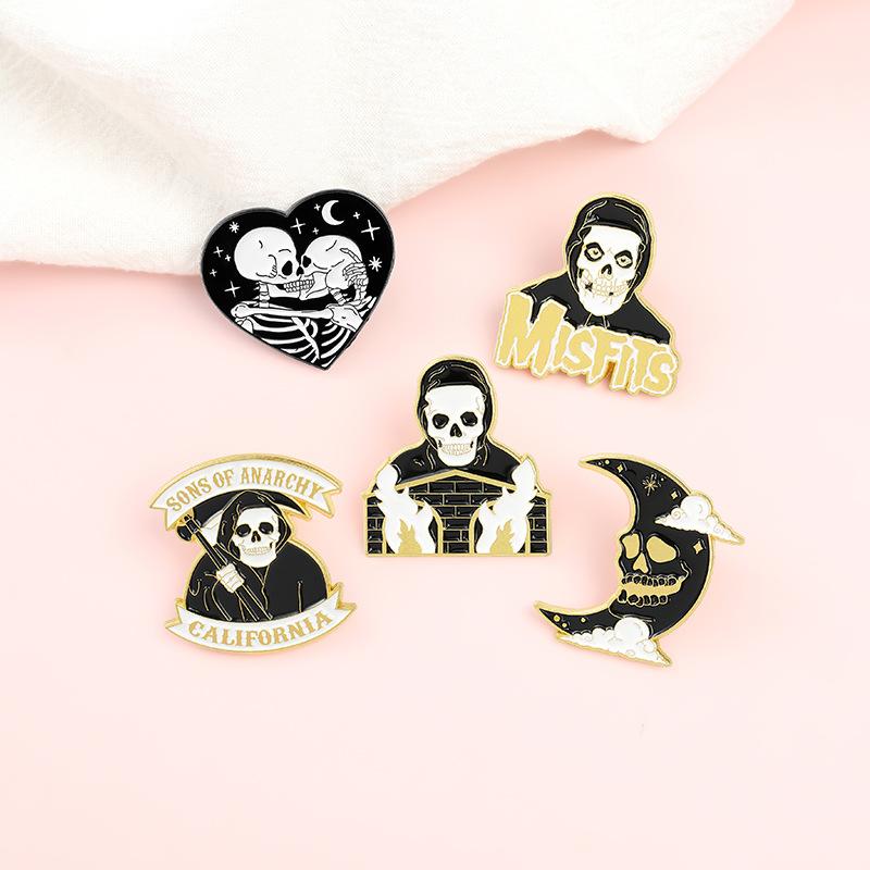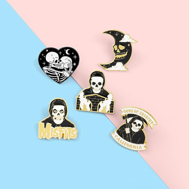 Broche de calavera con forma de luna de amor creativo, de comercio exterior, con personalidad, con letras y cara de calavera, insignia de joyería
