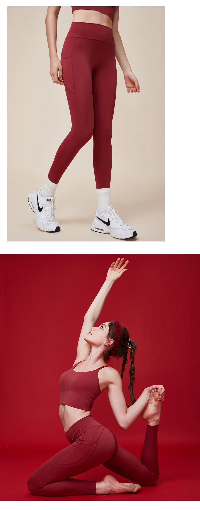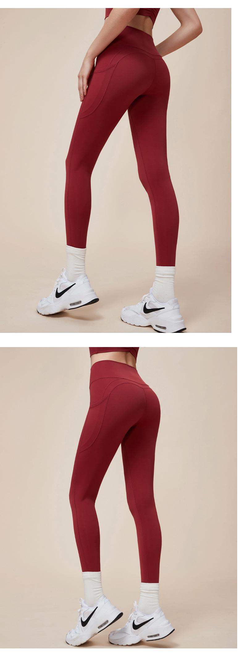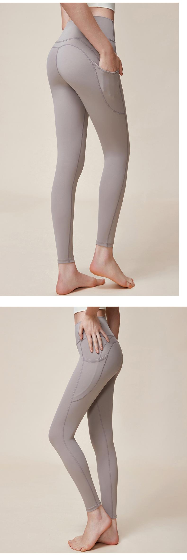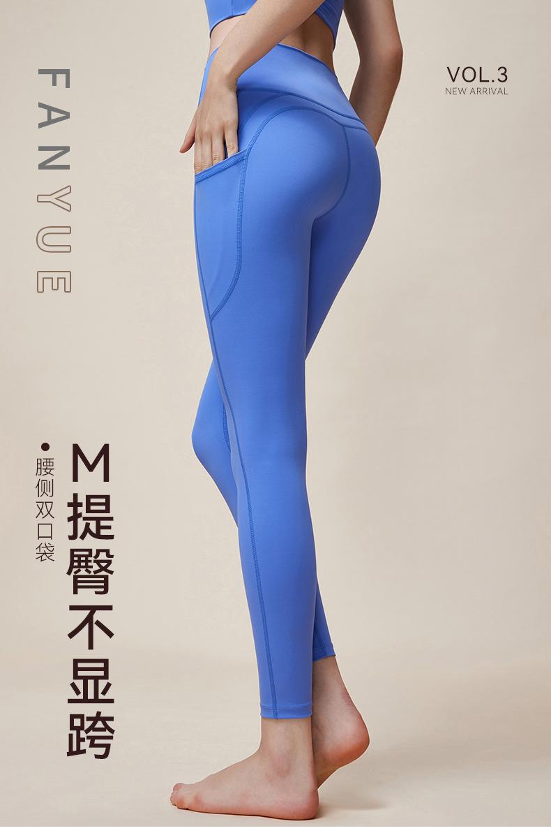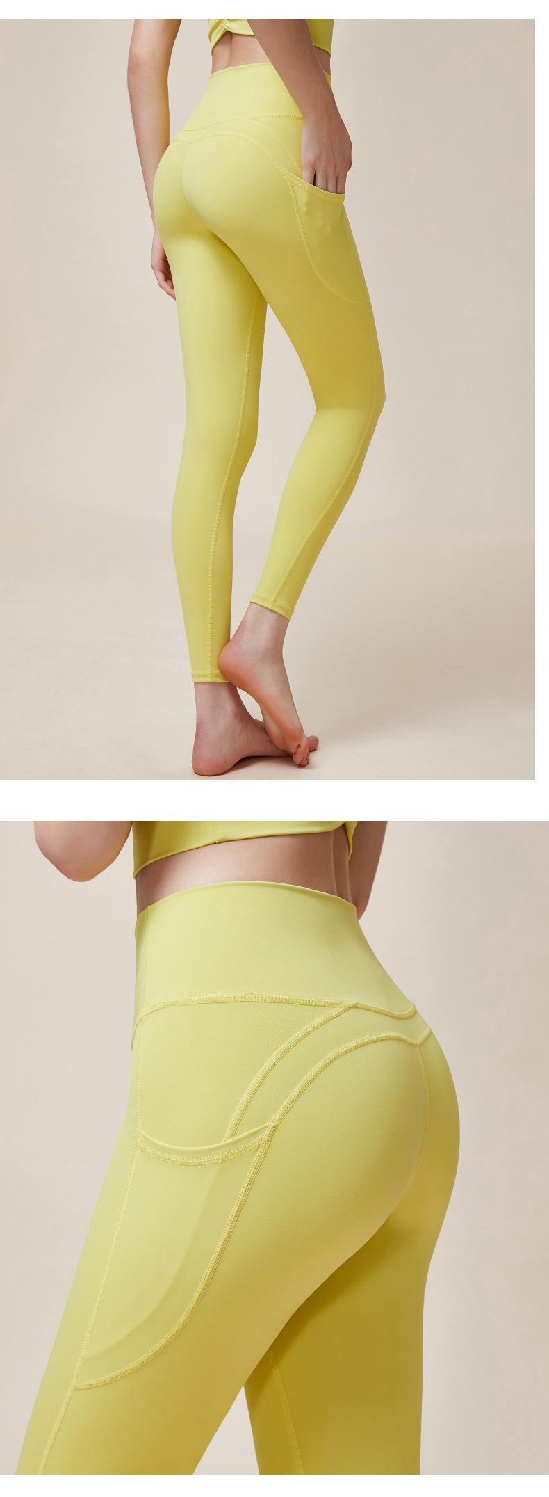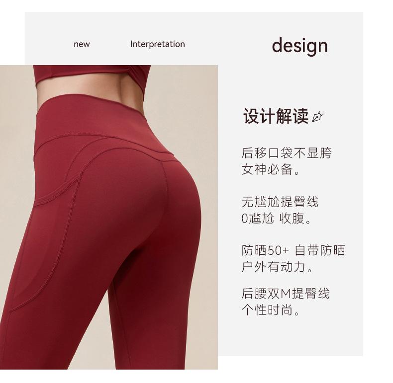 Nuevos pantalones de yoga de cintura alta con realce de cadera Double M, ajustados, con contracción abdominal, pantalones de yoga deportivos de línea Peach Hip sin vergüenza, con bolsillos dobles