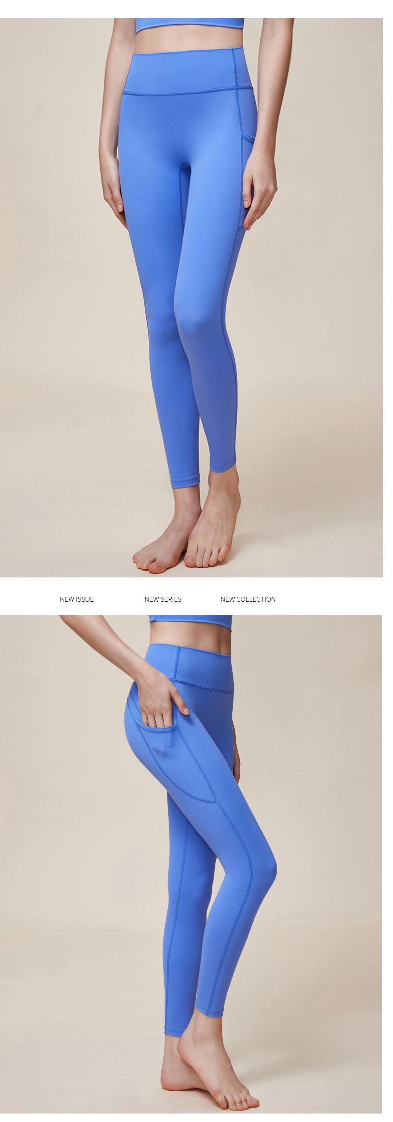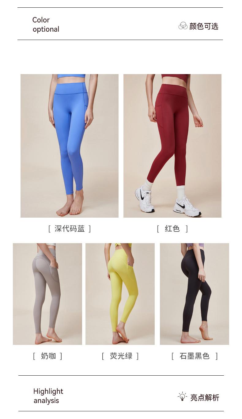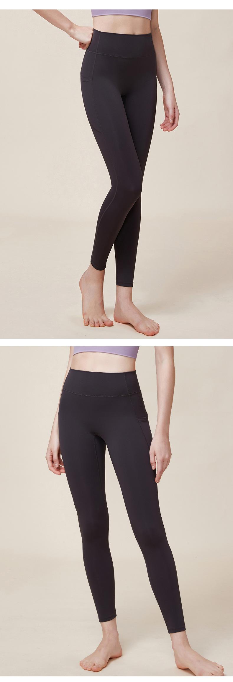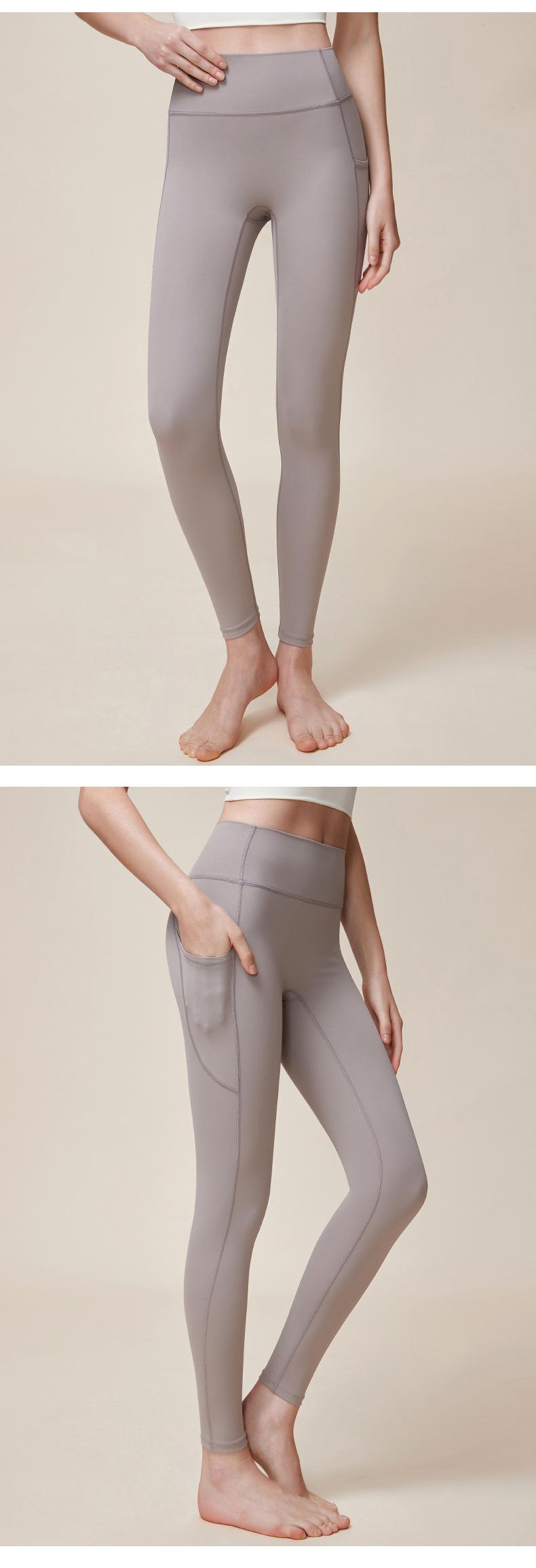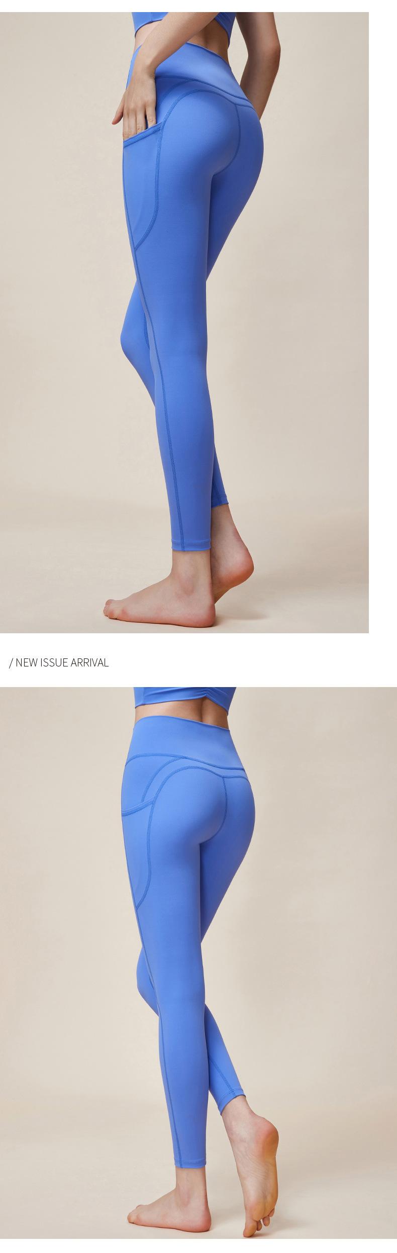 Nuevos pantalones de yoga de cintura alta con realce de cadera Double M, ajustados, con contracción abdominal, pantalones de yoga deportivos de línea Peach Hip sin vergüenza, con bolsillos dobles