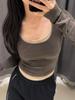 Capa base íntima instantáneamente adorable, Top cepillado de cuello redondo con efecto de dos piezas super reductor para otoño