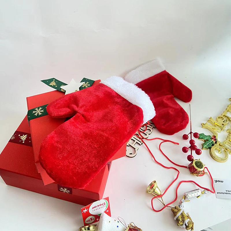 Guantes Jiaqi Nuevos de Navidad Guantes Rojos de Terciopelo Dorado Decoraciones Navideñas Accesorios para Actuación Niños Adultos