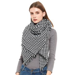 Ventas directas de fábrica comercio exterior Europa y América primavera otoño invierno damas chal imitación cachemira bufanda cuadrada pata de gallo blanco y negro al por mayor