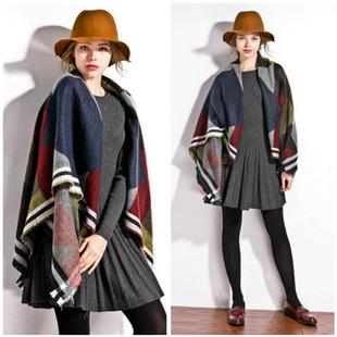Suministro directo de fábrica Estilo popular de Amazon Otoño e invierno nuevo capa chal a cuadros con botón de cuerno para niños padres e hijos