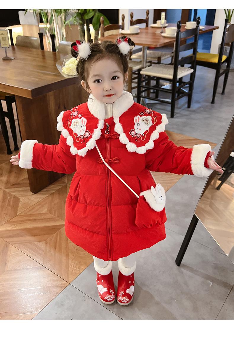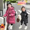 Chaqueta de plumón para niña 2025 Ropa nueva de invierno Chaqueta de algodón de longitud media para niños Abrigo de algodón aterciopelado para bebé 90 Abrigo de algodón grueso de invierno