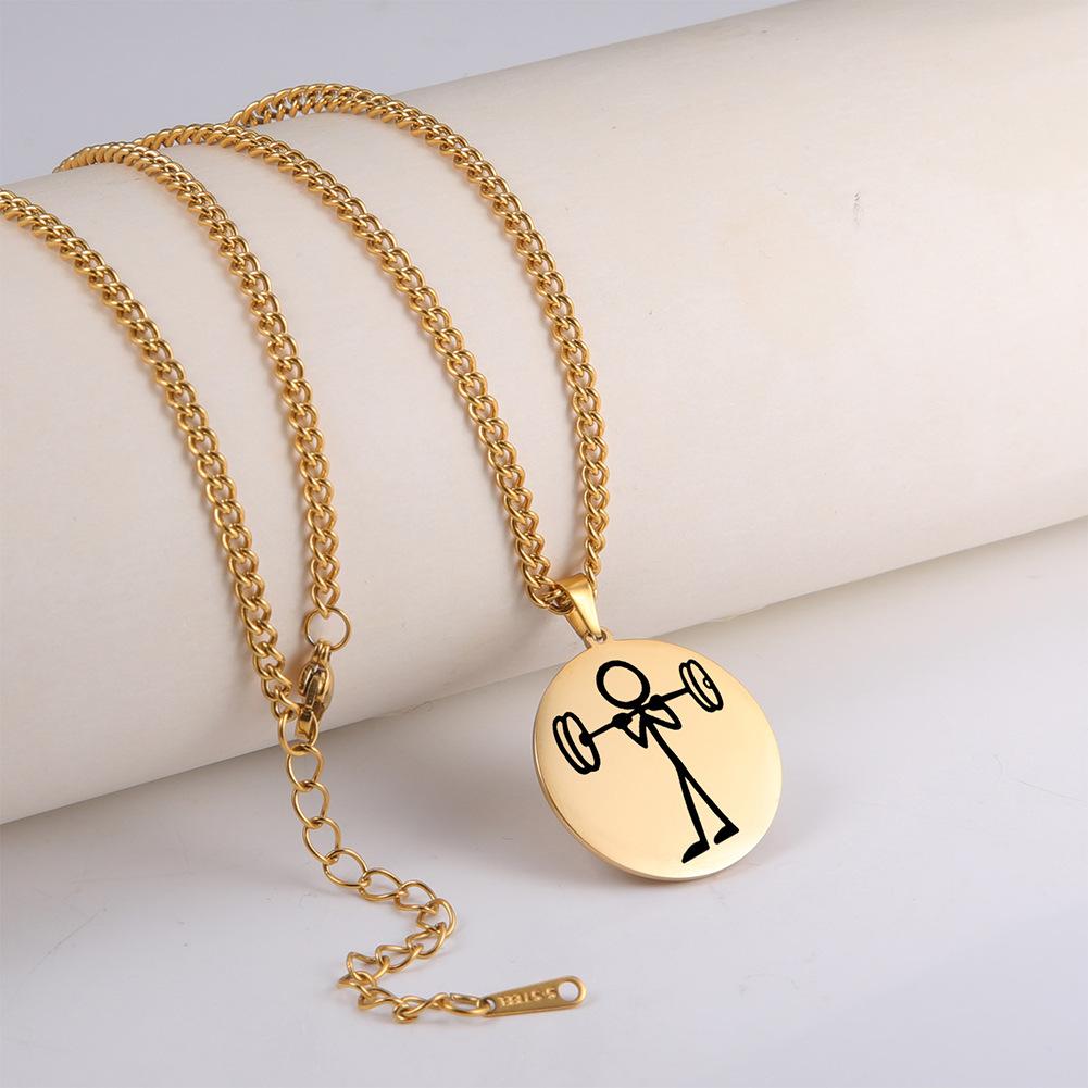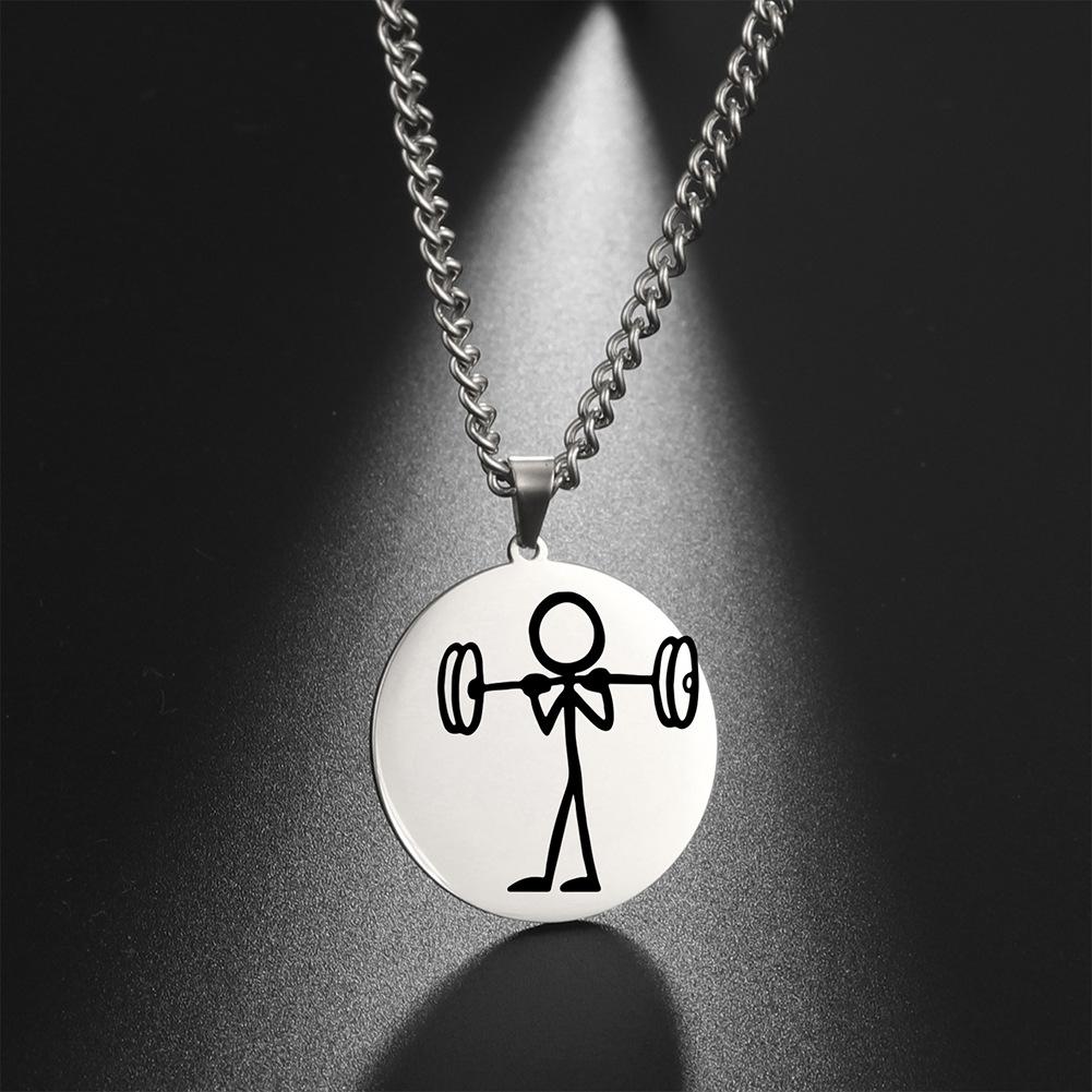 Collar redondo con marcado láser, colgante de fitness, personalidad, hip hop, de acero inoxidable, para hombres y mujeres, venta caliente transfronteriza europea y americana