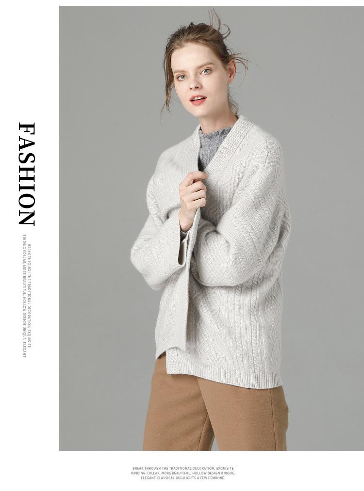 Suéter de Cachemira para Mujer Otoño e Invierno 100% Cachemira Pura Moda Femenina Camiseta Básica Cárdigan Tejido Holgado Suéter de Otoño e Invierno para Ropa Exterior