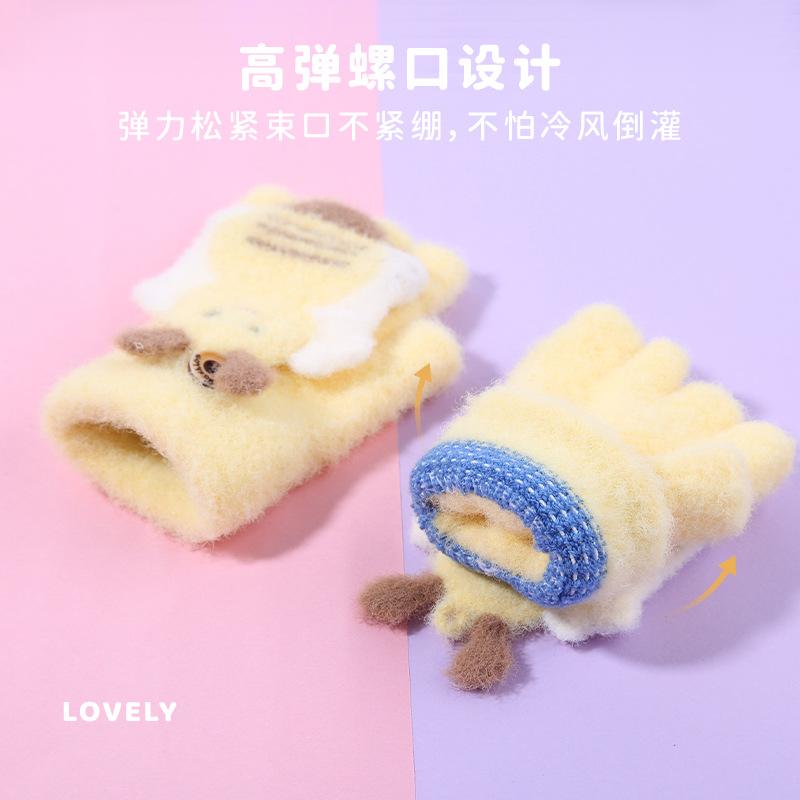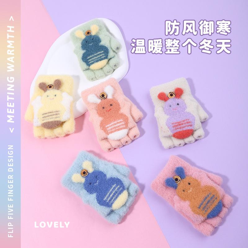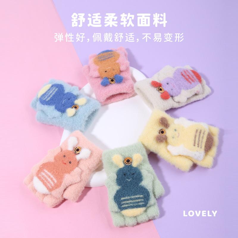 Guantes Cálidos de Invierno para Niños, Medio Dedo, con Solapa, Felpa Engrosada a Prueba de Frío, para Niños y Niñas, Bebé, Tejidos de Lana, Dibujos Animados