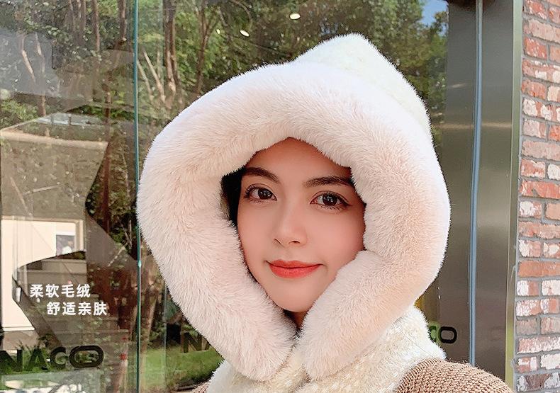 9850 Sombrero de Invierno de Felpa Estilo Coreano Forrado de Polar Cortavientos Gorro Pulóver Cálido Engrosado Sombrero Bufanda Cruzada Todo en Uno Adulto
