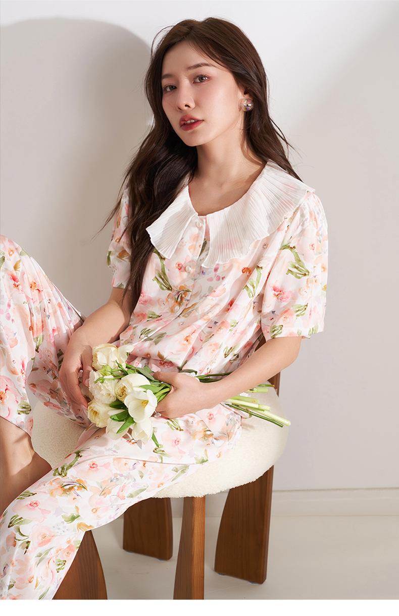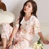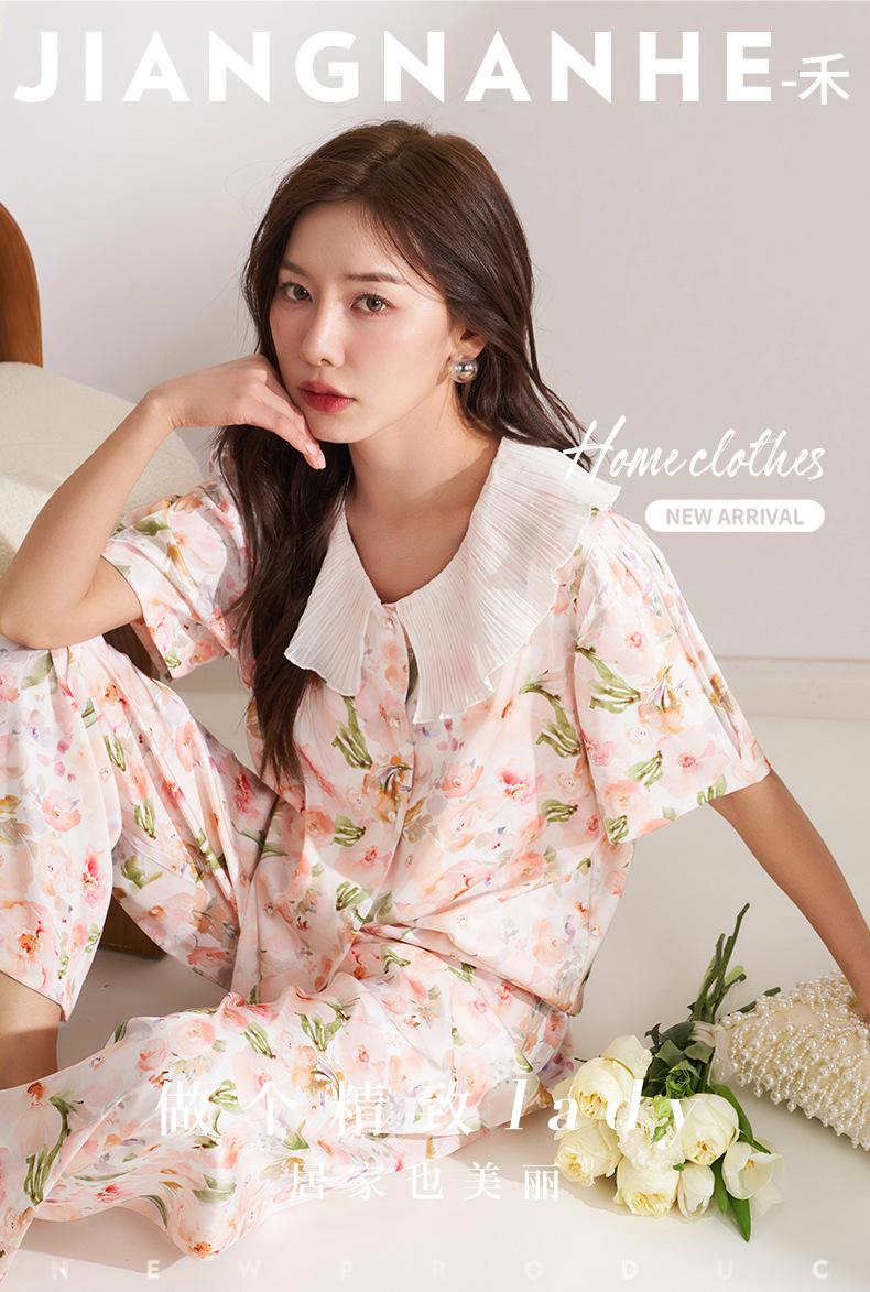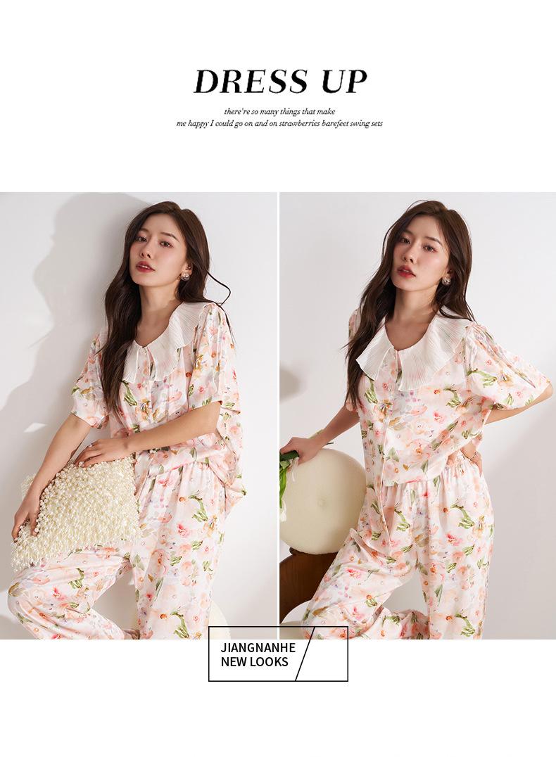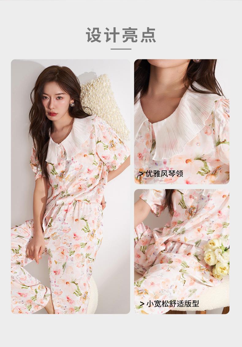 Pijama de seda de hielo 2023 para mujer, verano, delgado, cuello órgano Fangfei, alta calidad, ropa de casa para exteriores, traje de pantalones cortos de manga corta
