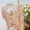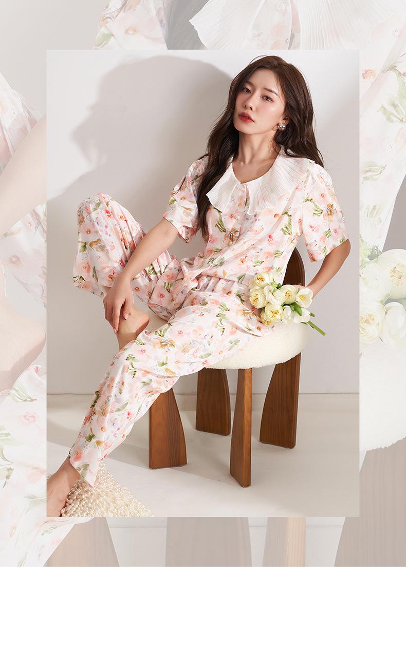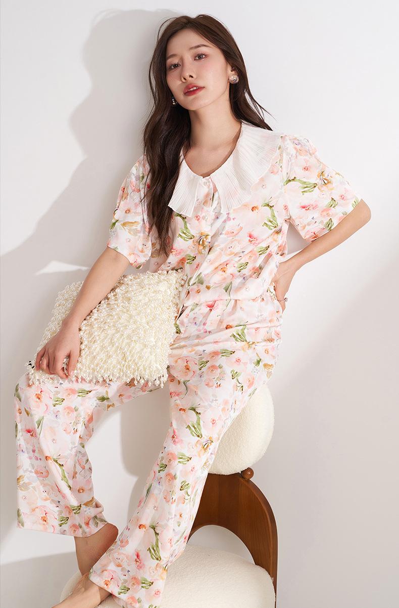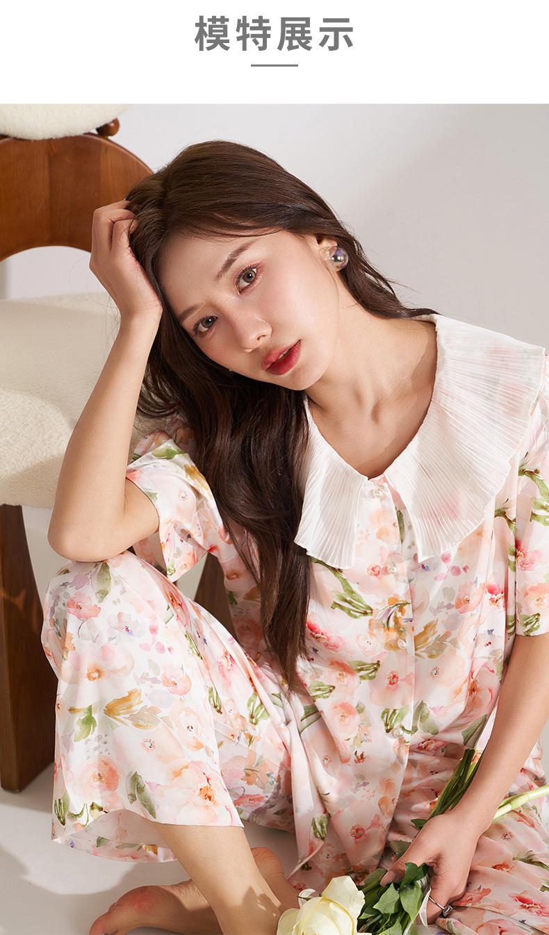 Pijama de seda de hielo 2023 para mujer, verano, delgado, cuello órgano Fangfei, alta calidad, ropa de casa para exteriores, traje de pantalones cortos de manga corta