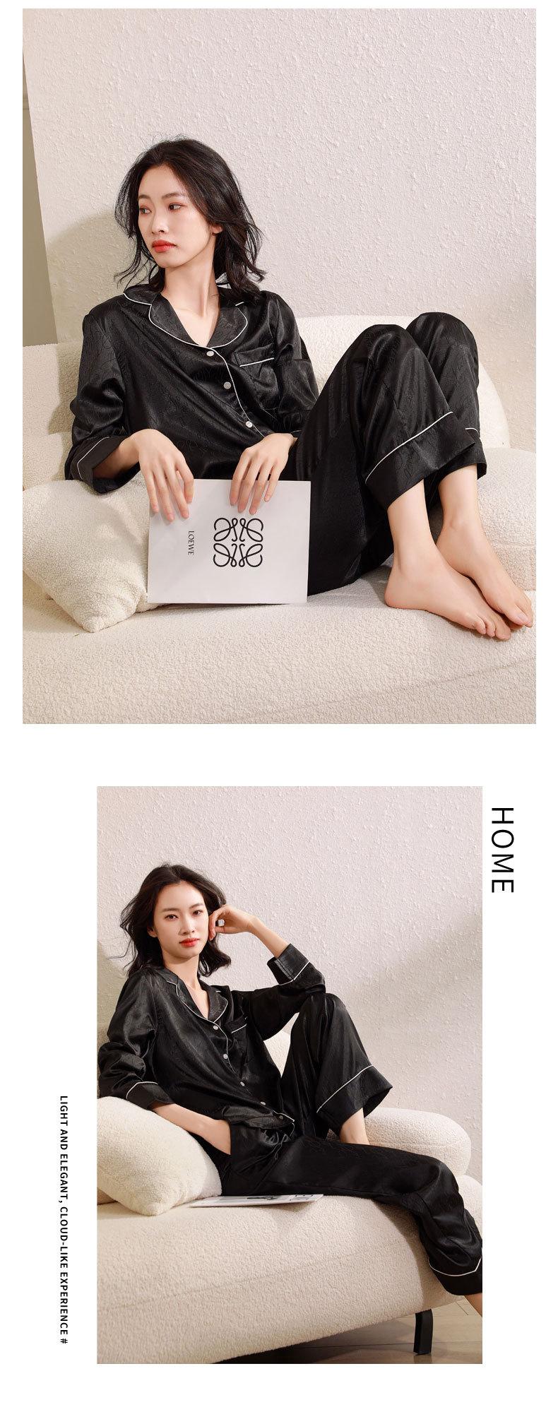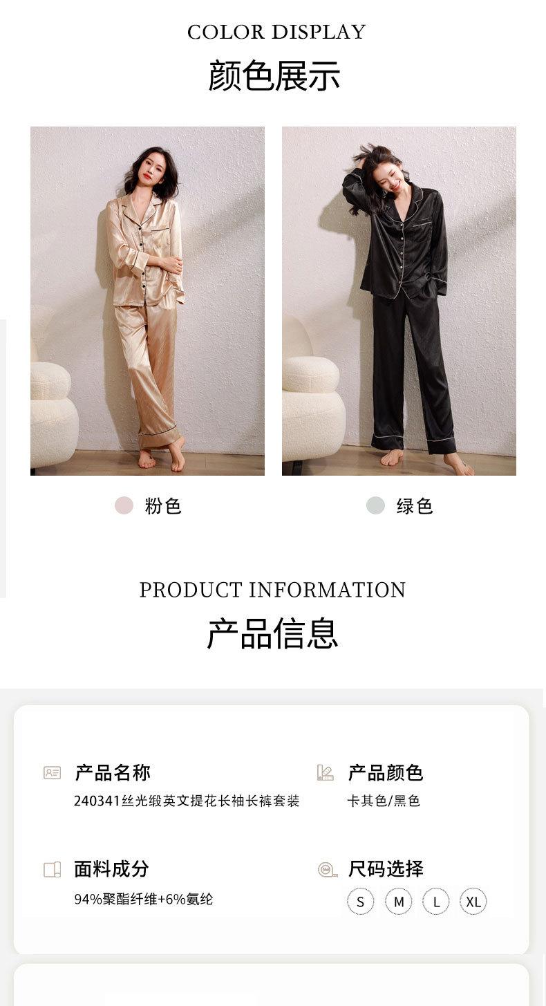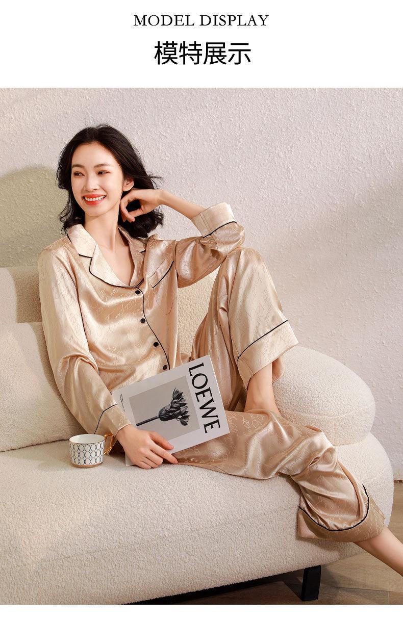 Pijama de primavera y otoño 2024 para mujer, conjunto de dos piezas de cárdigan suelto de alta calidad con letras de seda de hielo jacquard, se puede usar fuera del traje