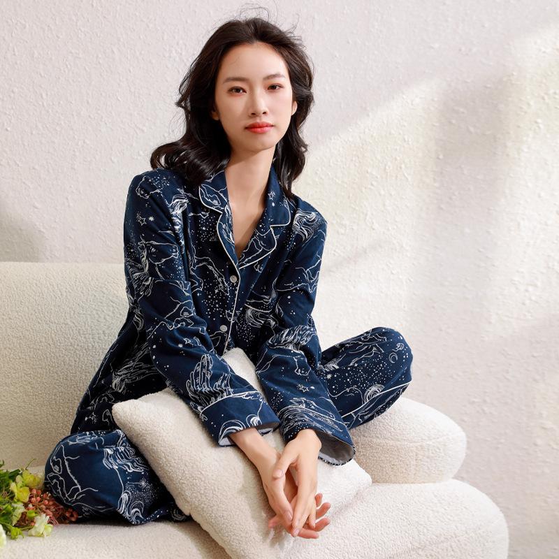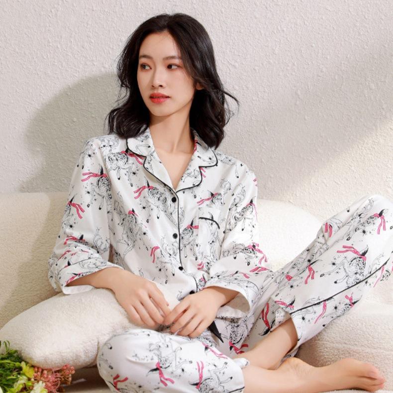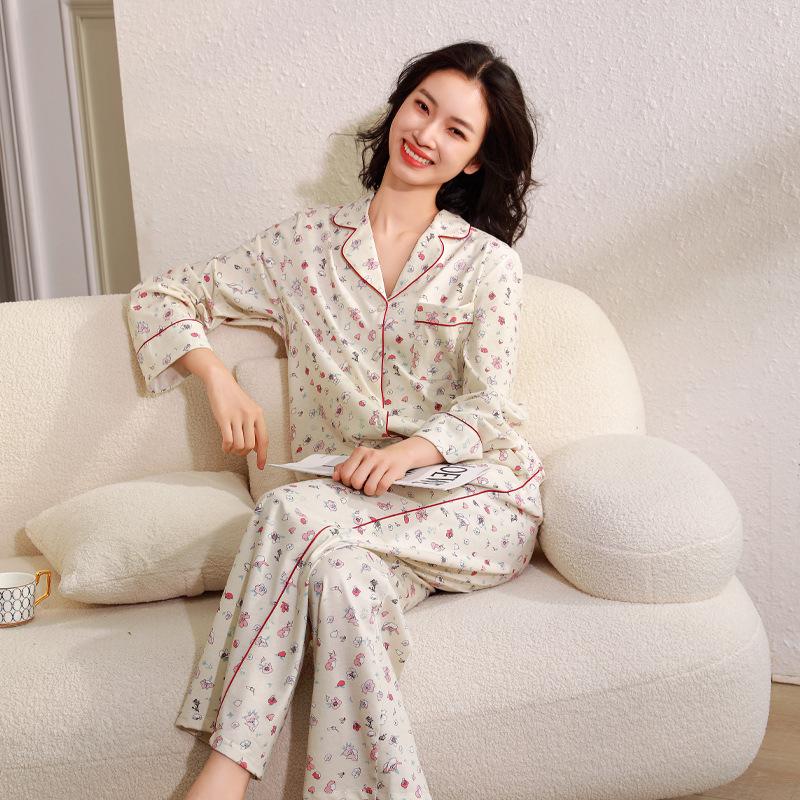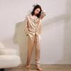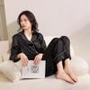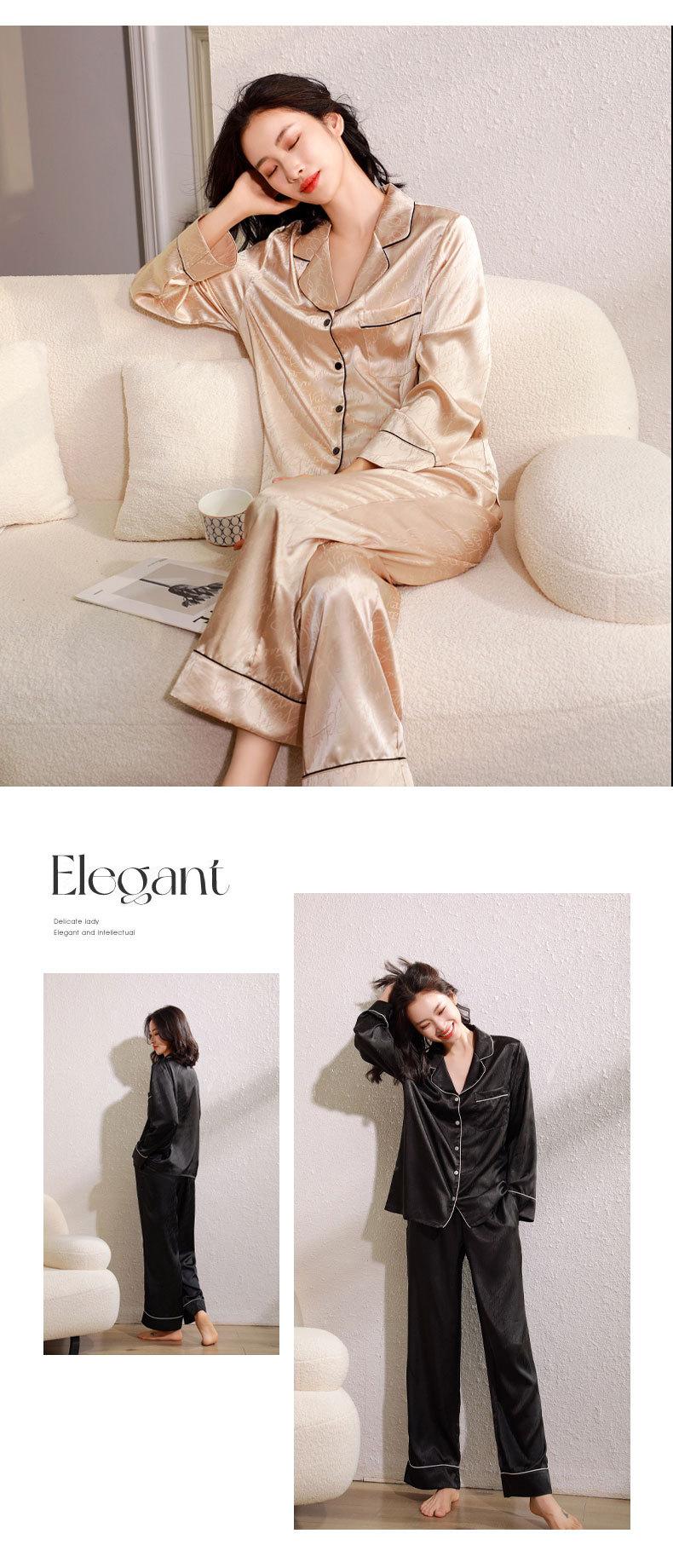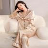 Pijama de primavera y otoño 2024 para mujer, conjunto de dos piezas de cárdigan suelto de alta calidad con letras de seda de hielo jacquard, se puede usar fuera del traje