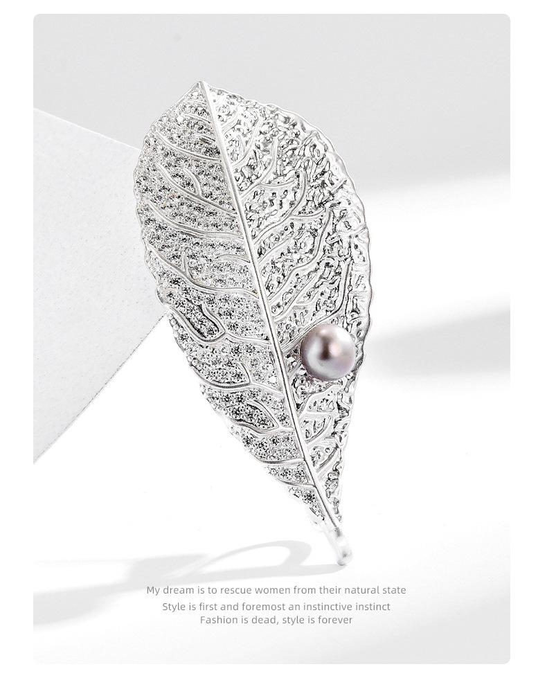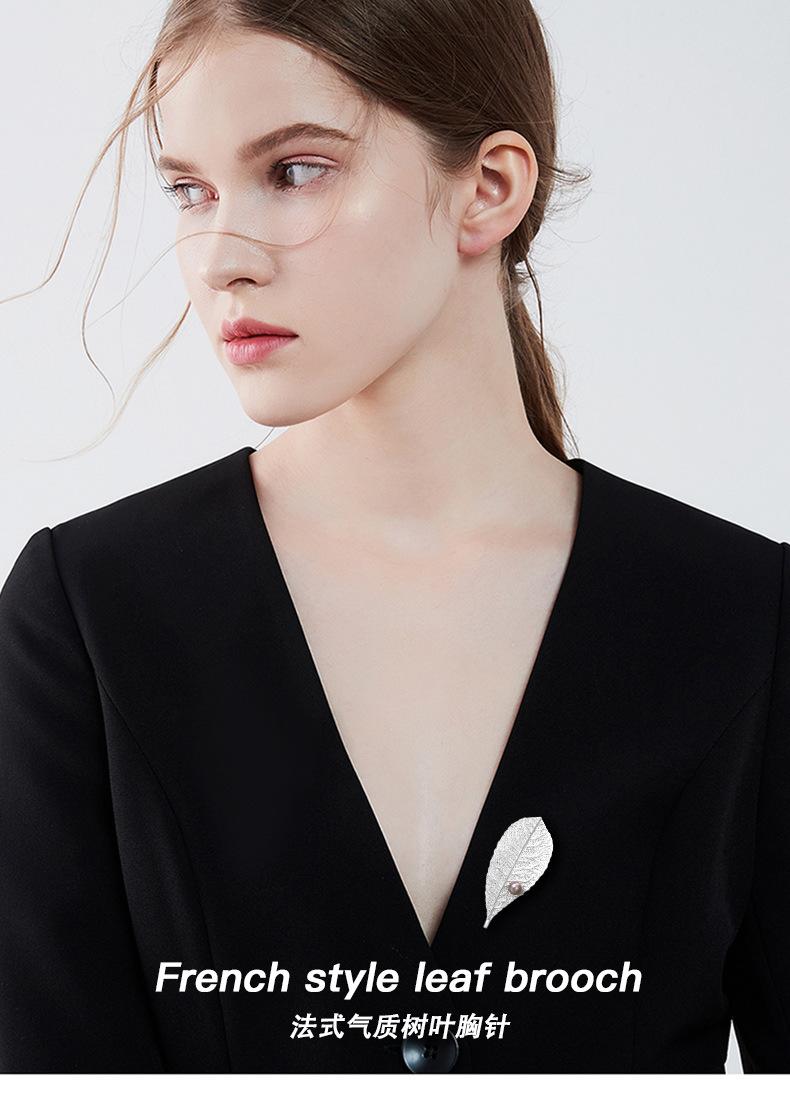 Nuevo estilo diseño francés elegante exquisito ramillete elegante versátil clásico broche de hoja de perla de agua dulce de alta gama