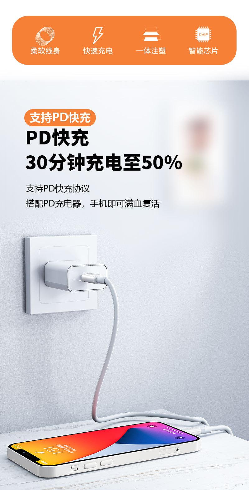 El Cable de Carga Rápida Pd20W es Adecuado para Pingguo 11/12/13/14Pro Cable de Carga para Teléfono Móvil Cable de Datos de Carga Rápida Original USB