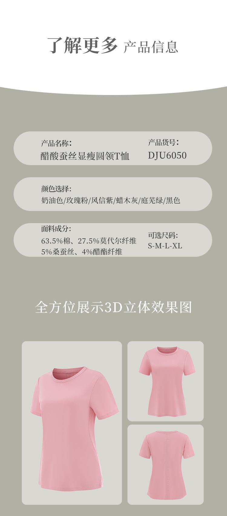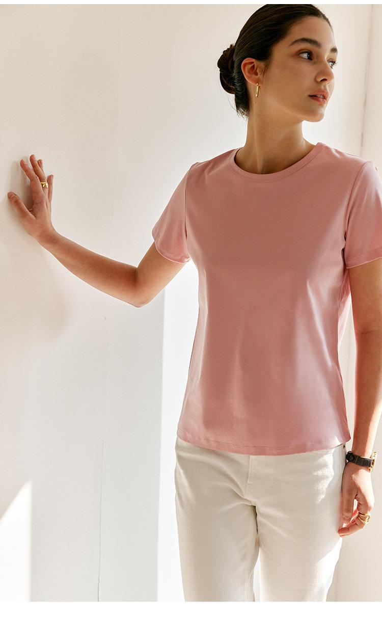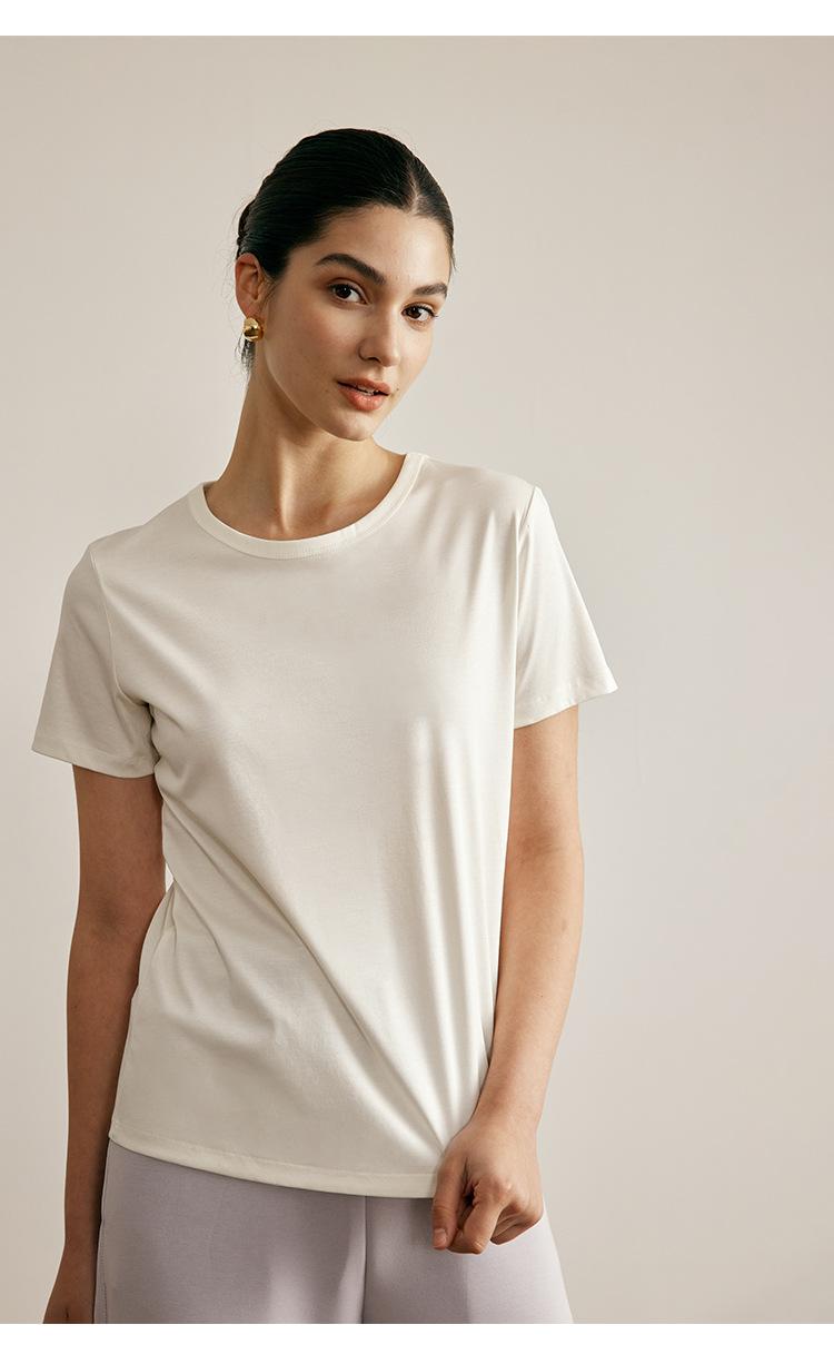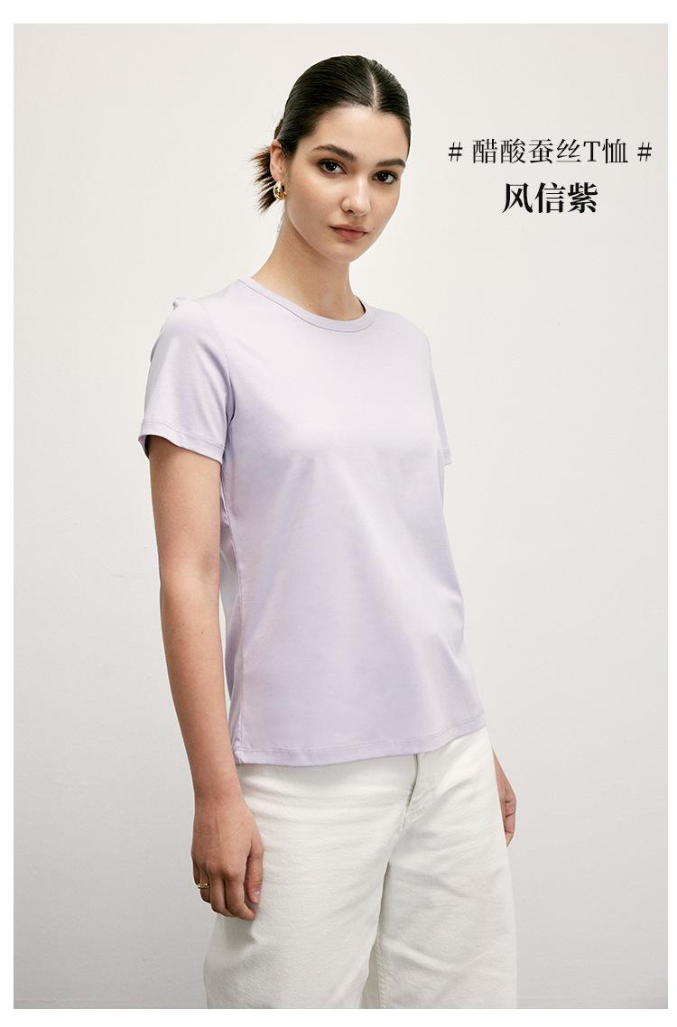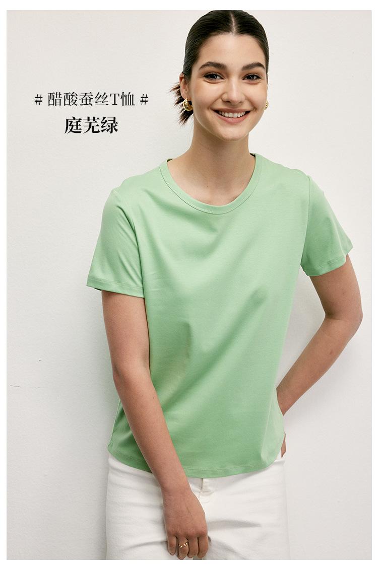 Camiseta de Verano para Mujer Nueva Color Puro Seda de Morera Sedosa Ligera y Delgada Casual Versátil Cuello Redondo Manga Corta