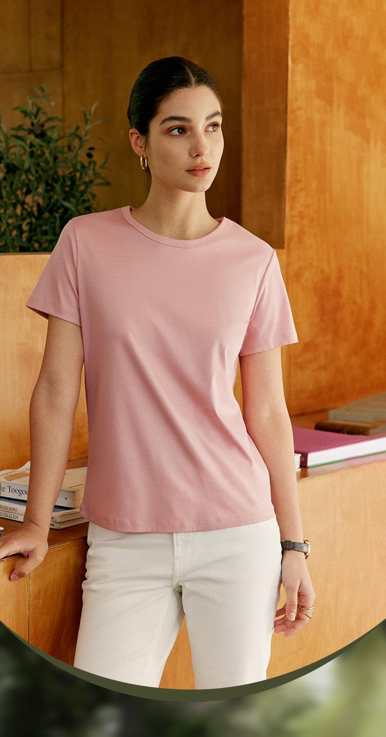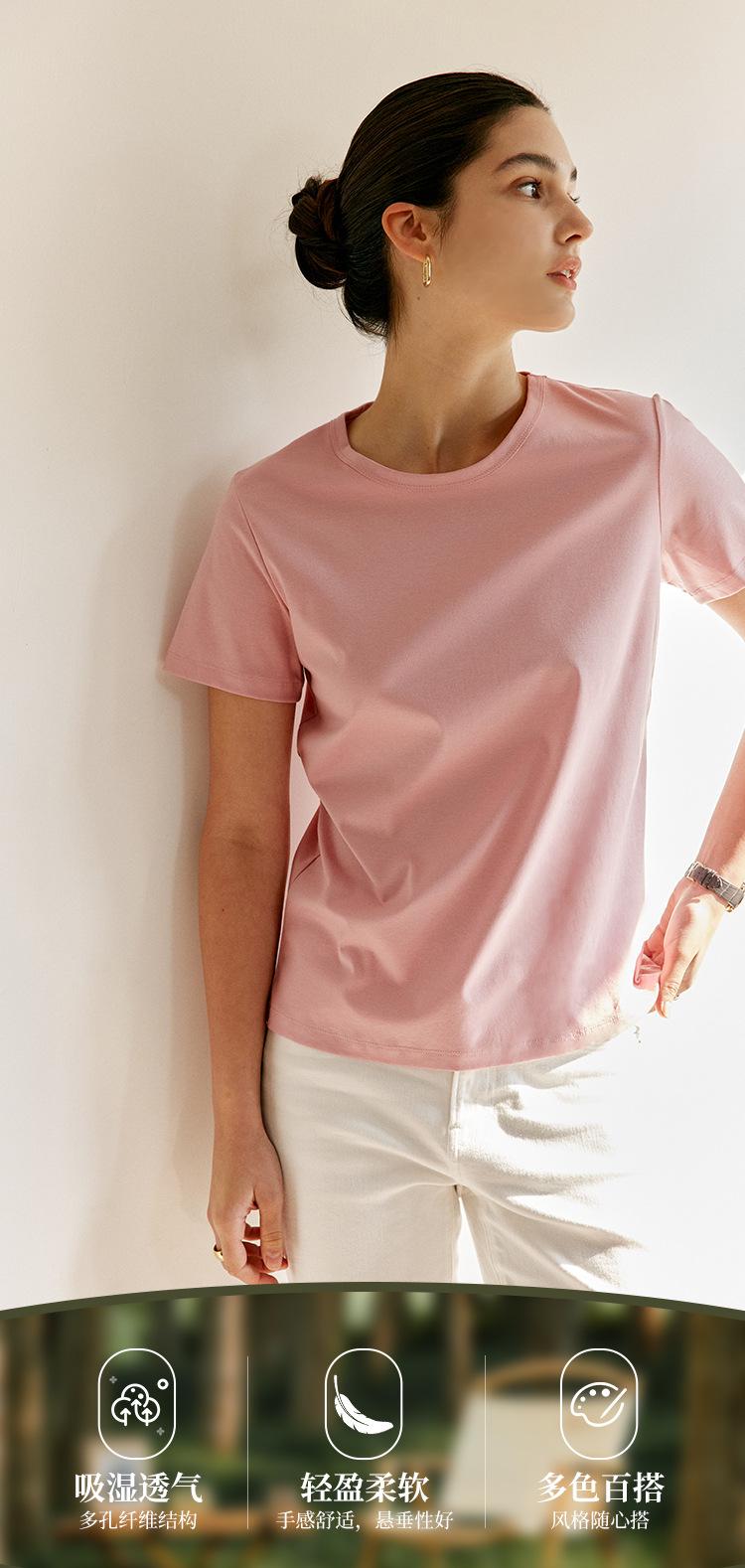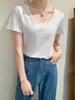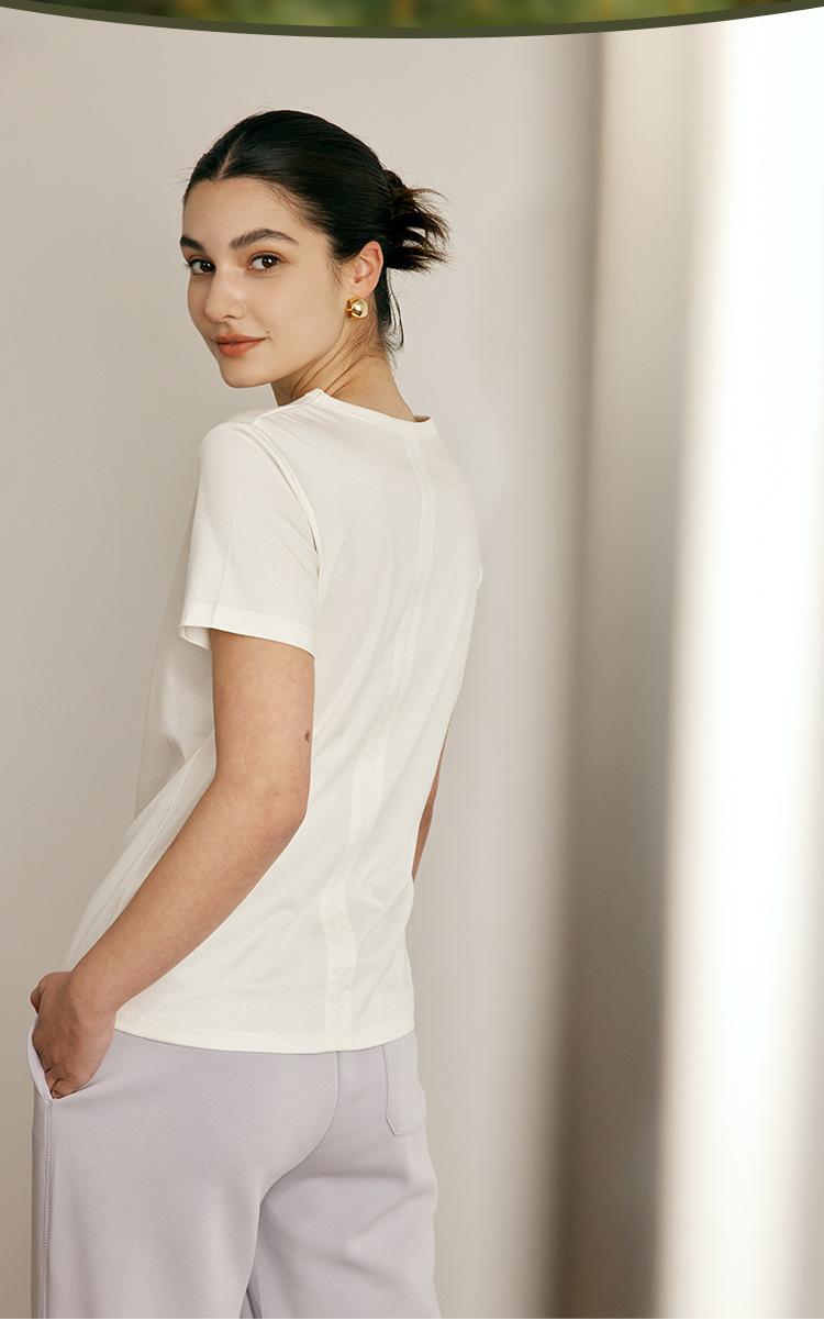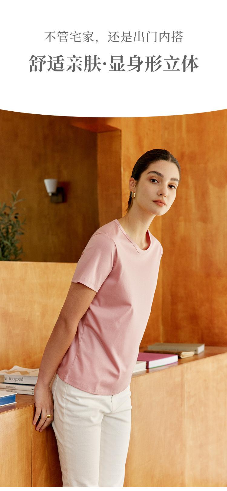 Camiseta de Verano para Mujer Nueva Color Puro Seda de Morera Sedosa Ligera y Delgada Casual Versátil Cuello Redondo Manga Corta