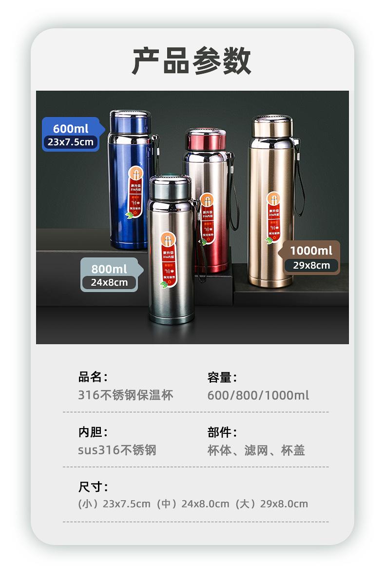 Termo portátil de acero inoxidable 316 de gran capacidad con tapa de estrella y laca antigoteo para té.