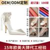ODM personalizado Europeo y Americano de alta gama satén correa al tobillo tacón de aguja moda tacones altos lujo ligero zapatos individuales OEM