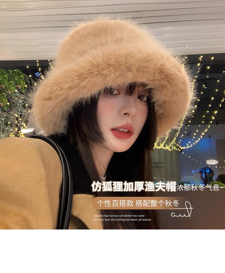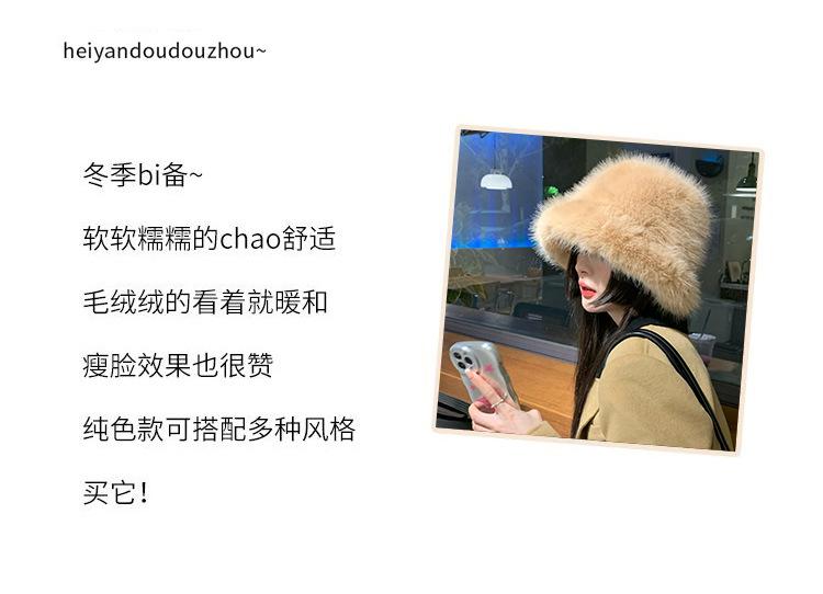 Sombrero de Pescador de Visón de Imitación para Mujer Otoño e Invierno Sombrero de Felpa de Alta Gama Cabeza Grande Cálido Protección para las Orejas Sombrero de Cuenca de Mongolia