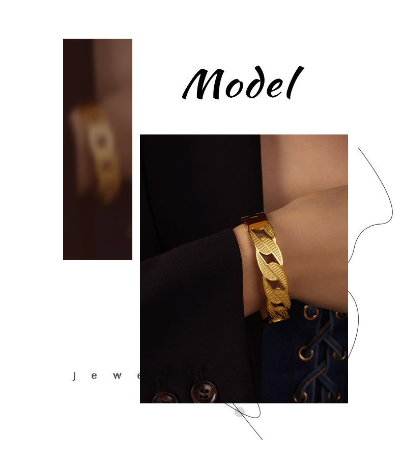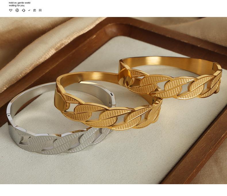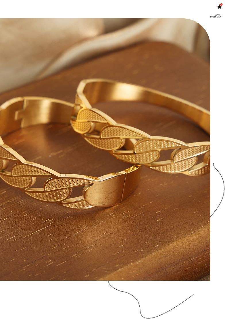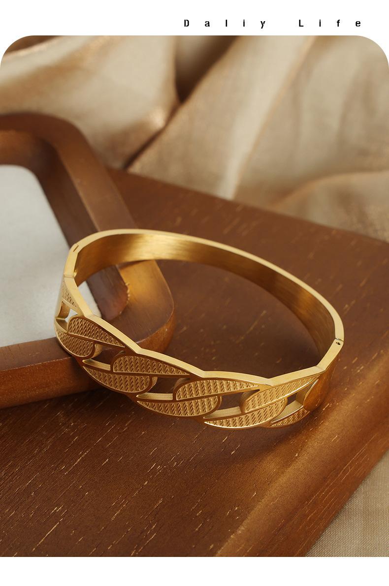 Pulsera hueca de diseño de estilo cadena europeo y americano, acero de titanio chapado en oro de 18 quilates, pulsera de temperamento de nicho que no se desvanece al por mayor para mujeres