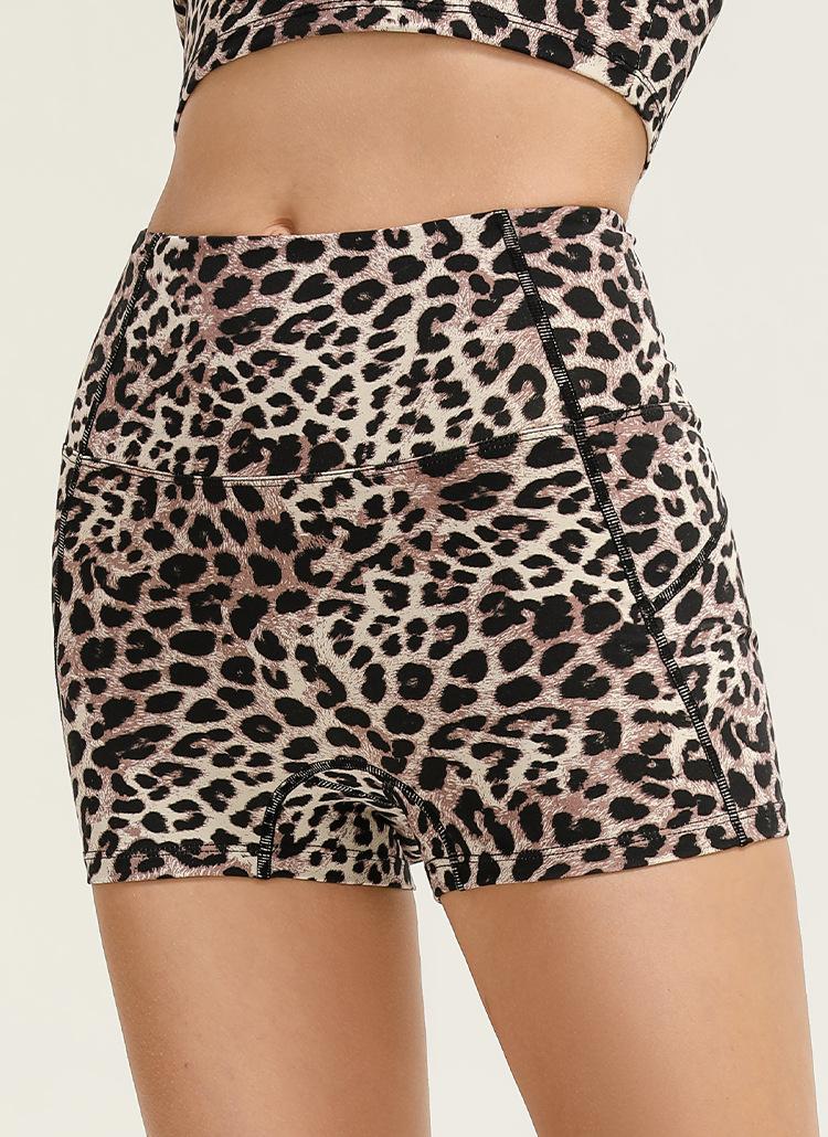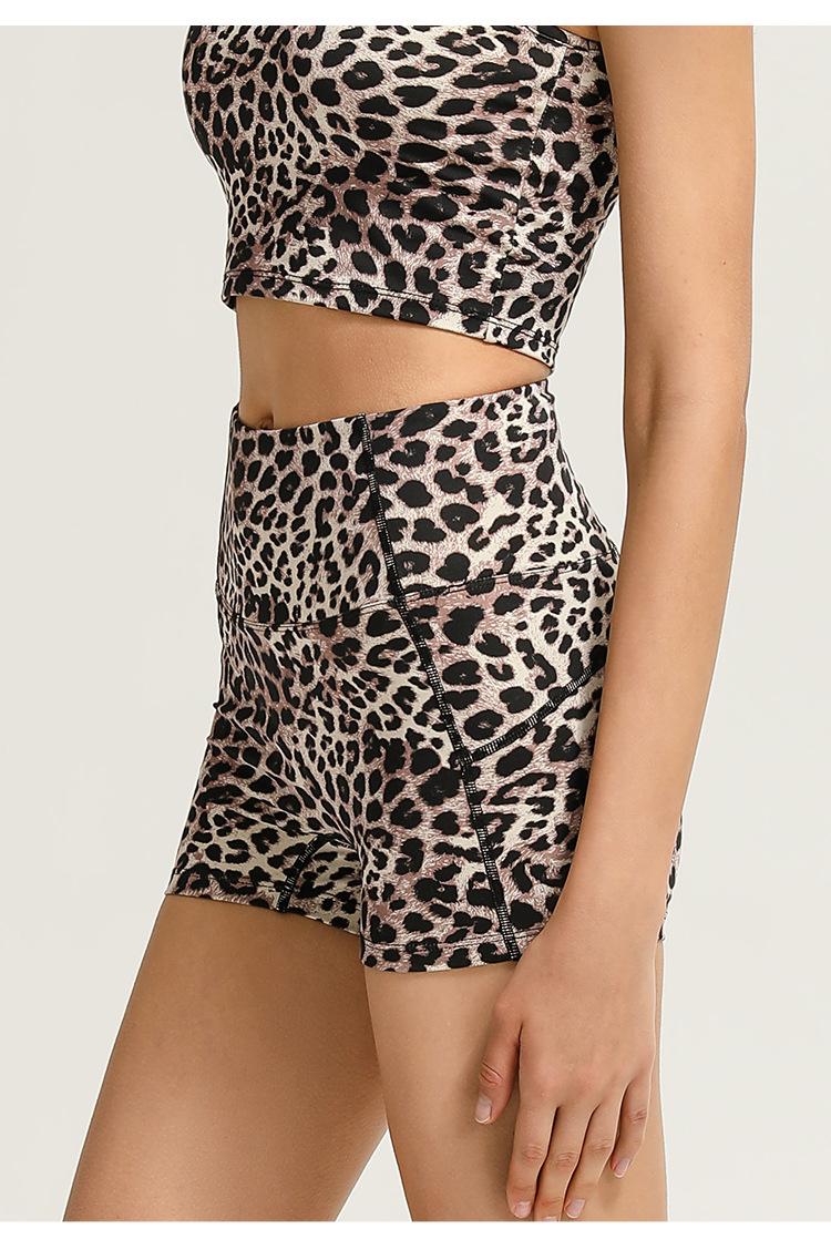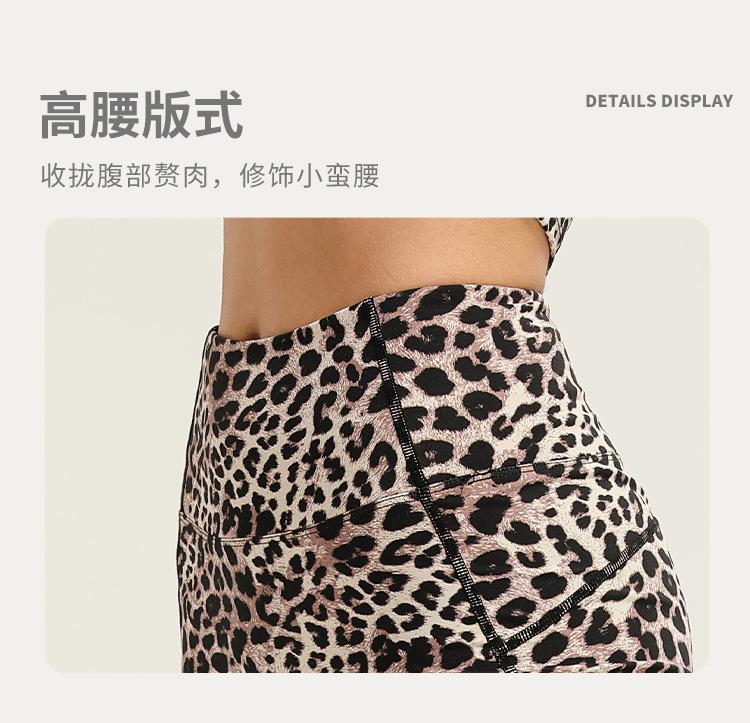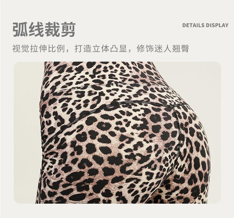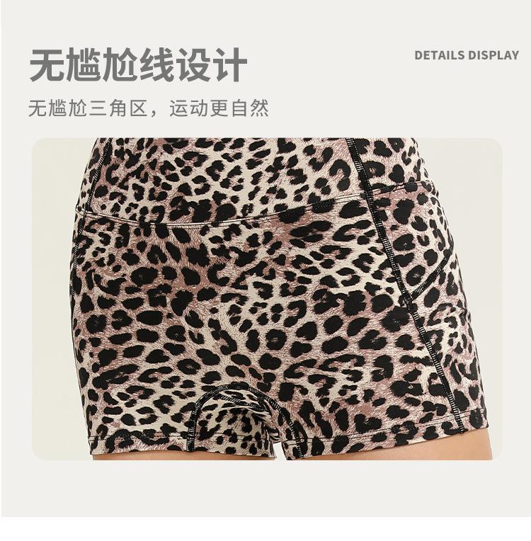 Nuevos pantalones cortos de yoga de cintura alta con estampado de leopardo sexy de estilo europeo y americano para realzar la cadera, mallas transpirables elásticas para exteriores