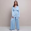 2022 otoño e invierno Nuevo traje de seda de hielo satinada estilo europeo y americano transfronterizo casual para ir al trabajo conjunto de dos piezas de manga larga y pantalones