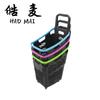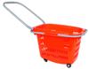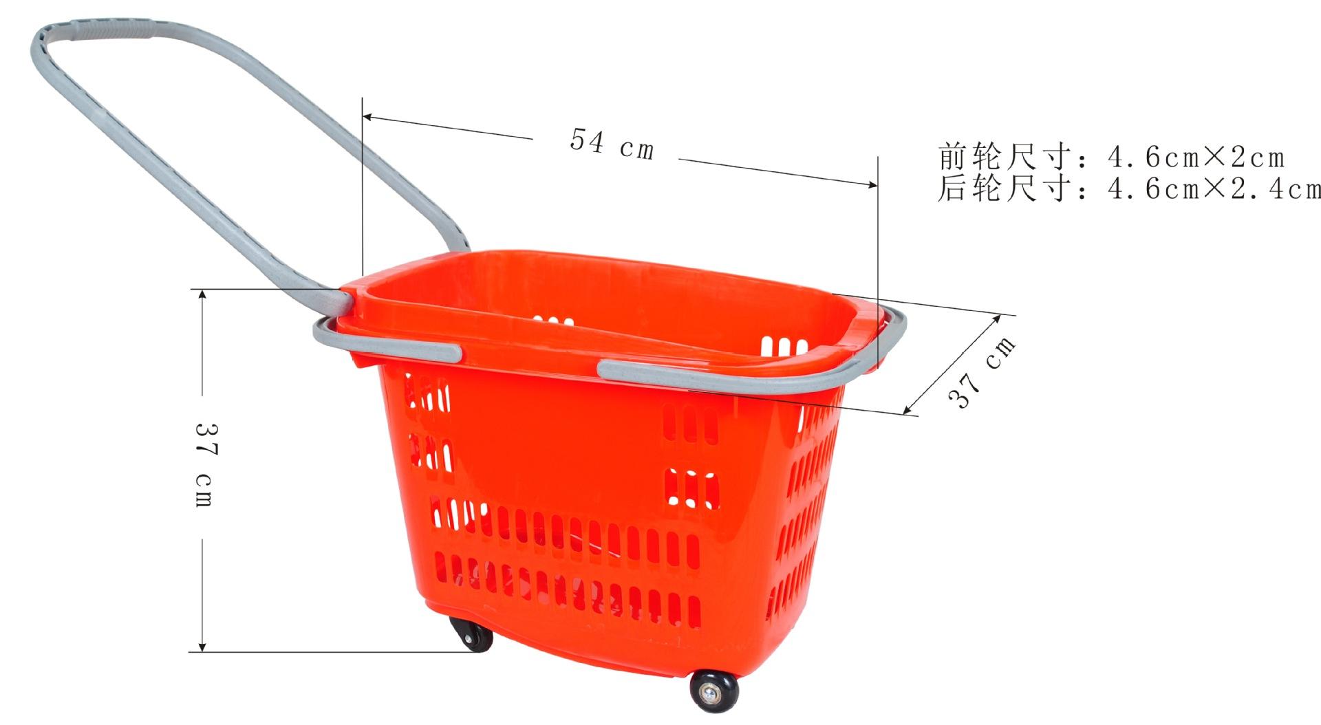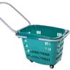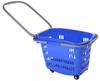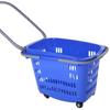 Carrito de compras de supermercado, cesta de compras, cesta de polea de plástico azul para verduras portátil engrosada, cesta con asa de cuatro ruedas
