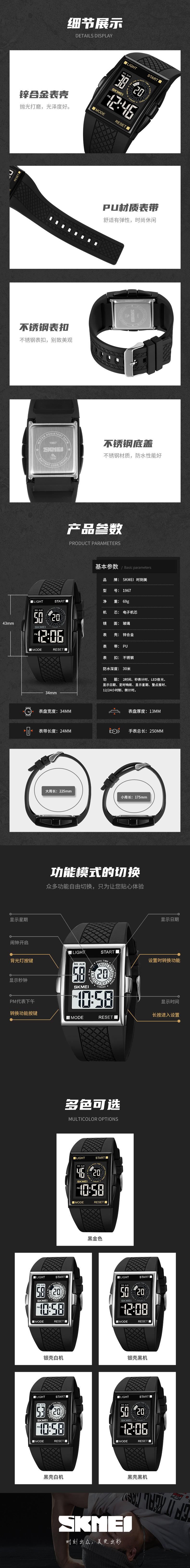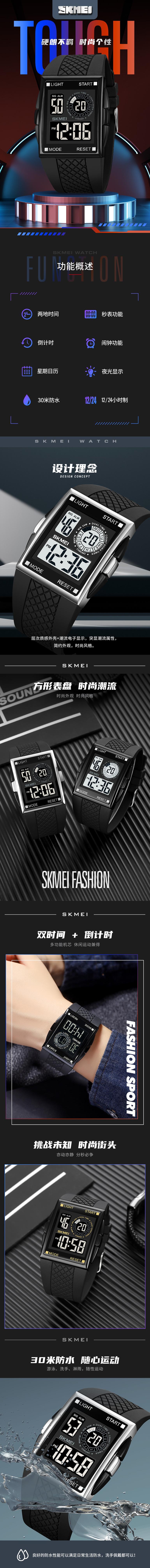 Reloj Electrónico para Hombre, Reloj Multifuncional Resistente al Agua, Reloj Electrónico Deportivo de Moda Luminoso Cuadrado