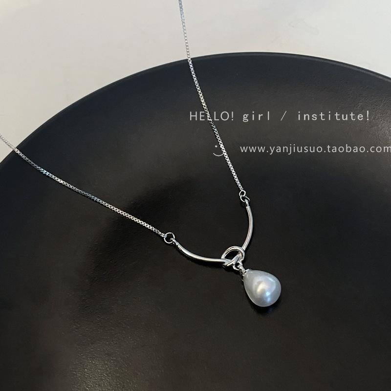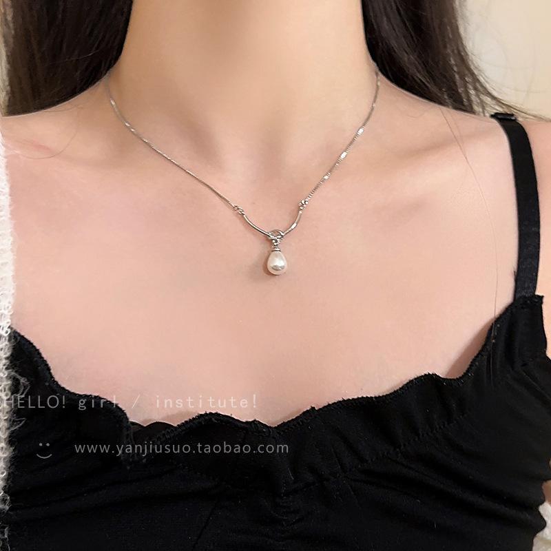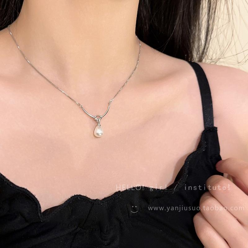 Collar de perlas de circón con forma de gota de agua para mujer, diseño de nicho de lujo ligero, temperamento de alta gama, estilo francés Hepburn, cadena de clavícula que combina con todo.