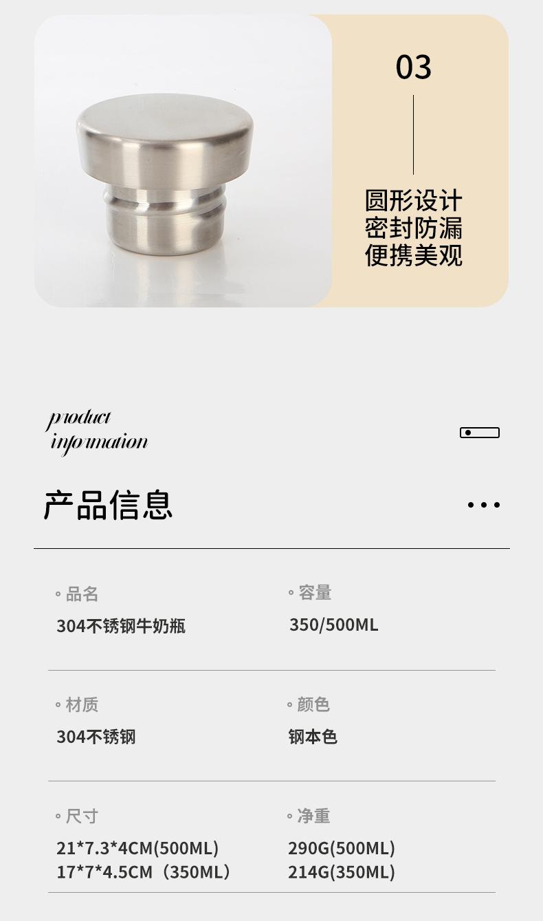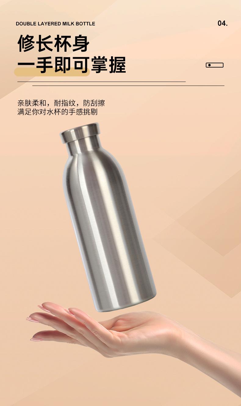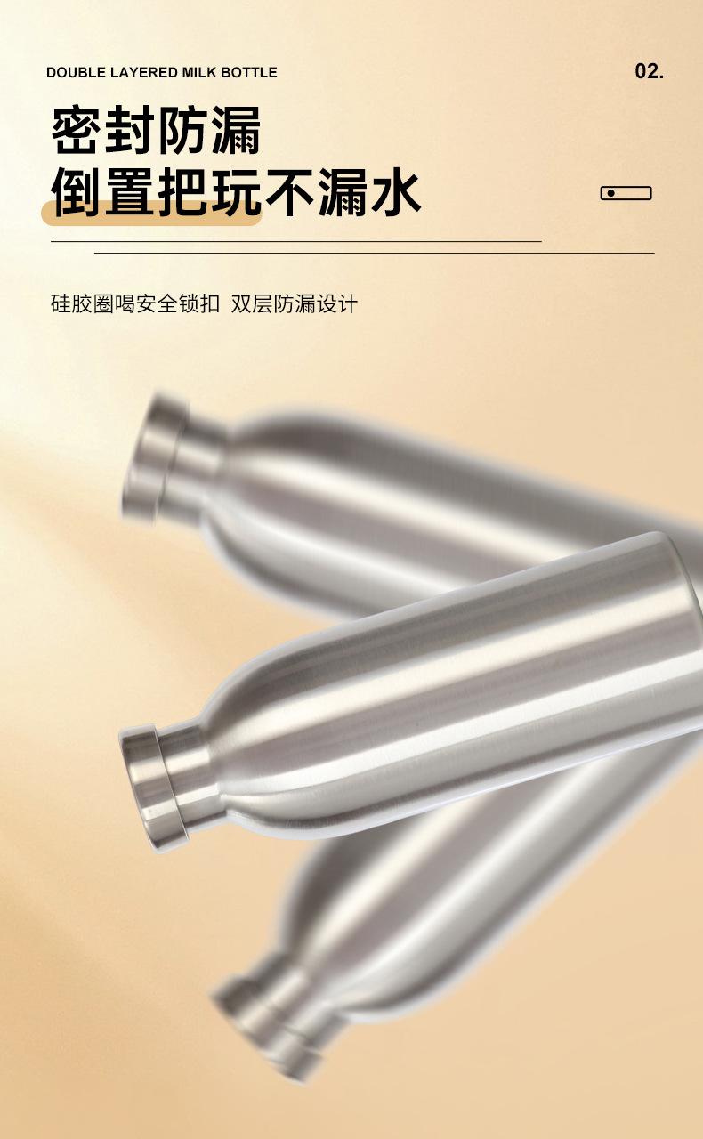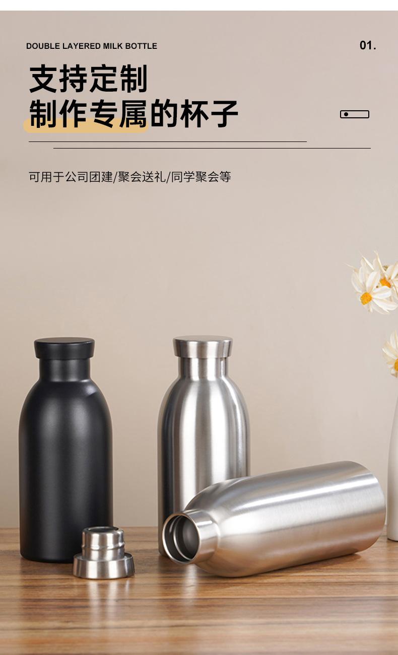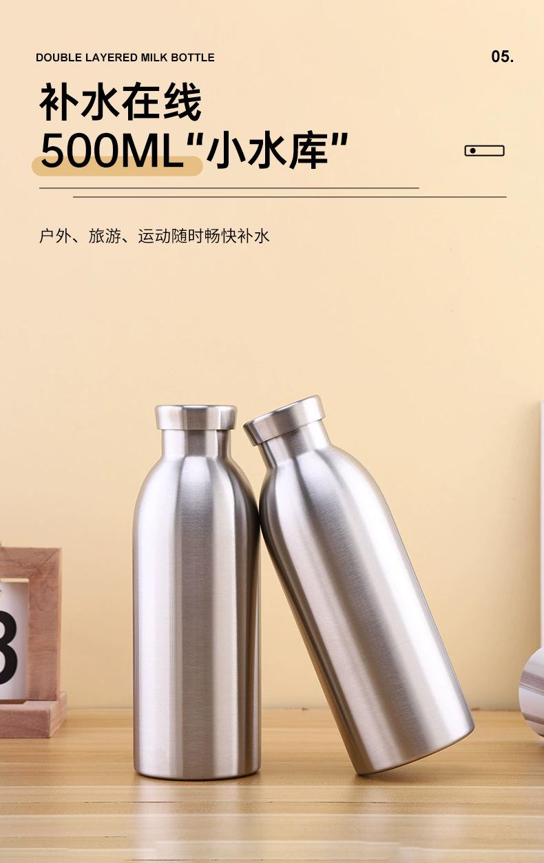 Nueva botella de leche creativa de 500 ml 304 de doble capa al vacío de acero inoxidable taza al vacío boca pequeña botella deportiva taza de agua