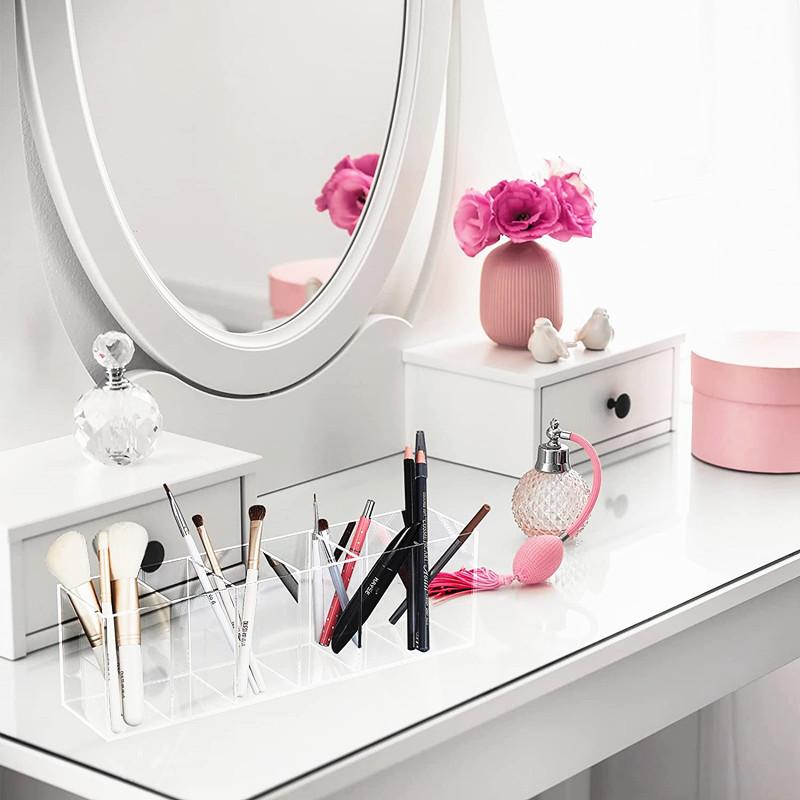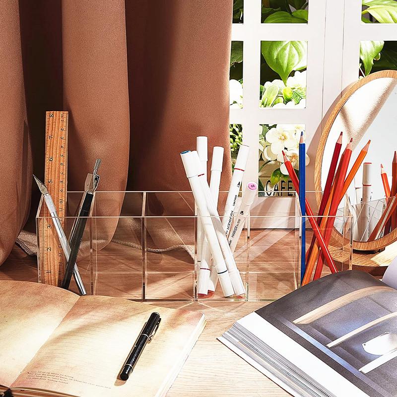 Estuche de almacenamiento para bolígrafos de acrílico transparente, de gran capacidad, con múltiples rejillas, para guardar brochas de maquillaje, para escritorio y oficina.