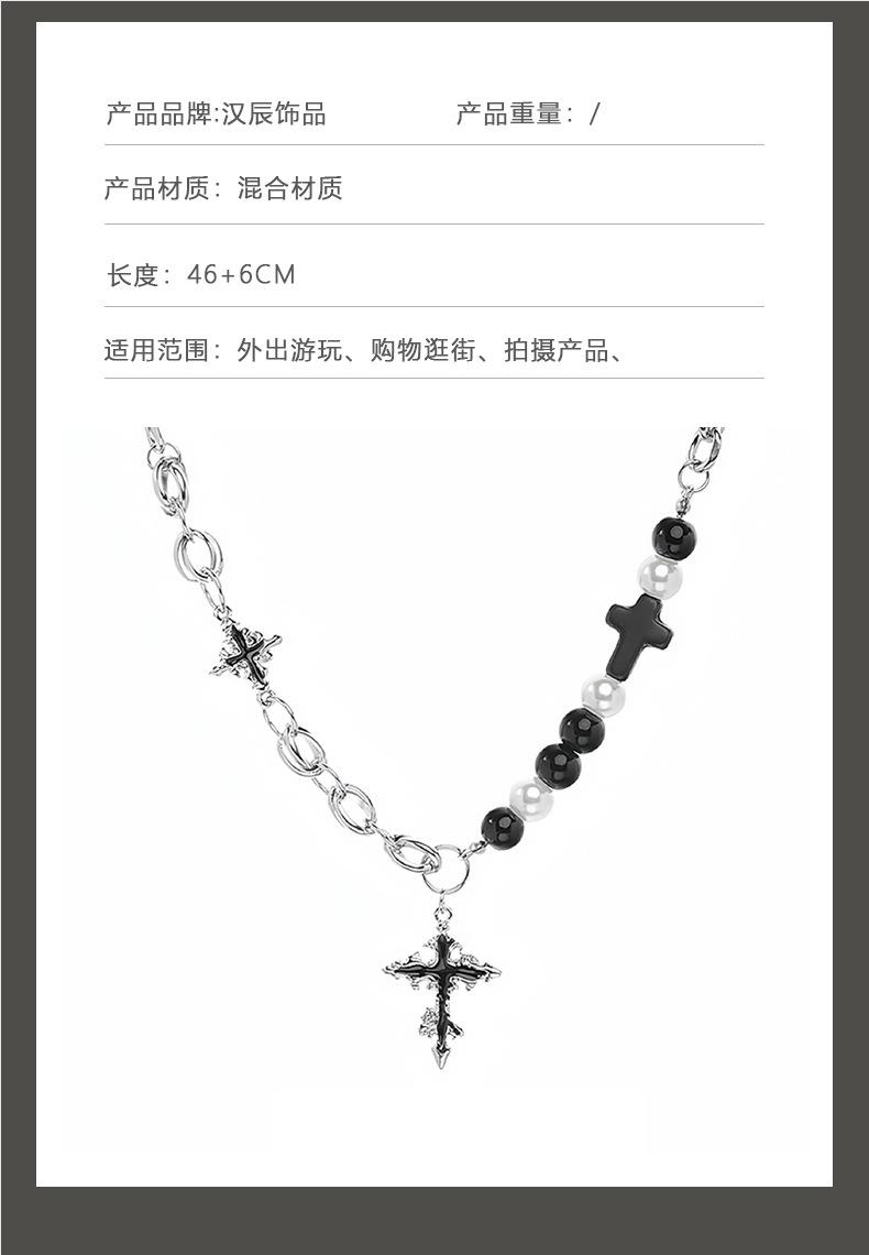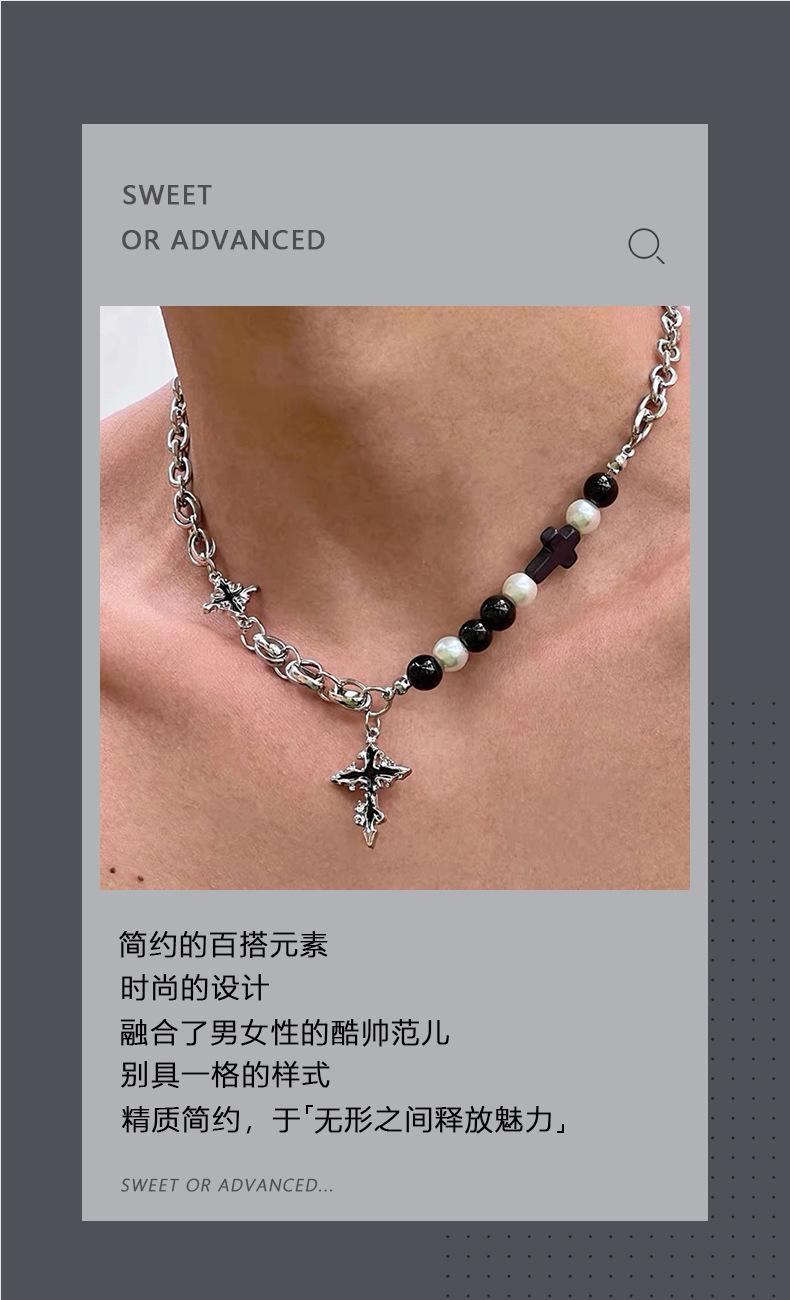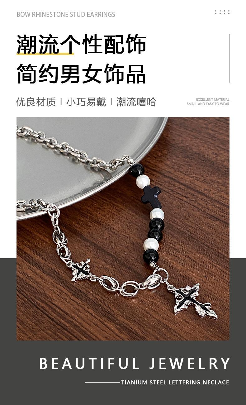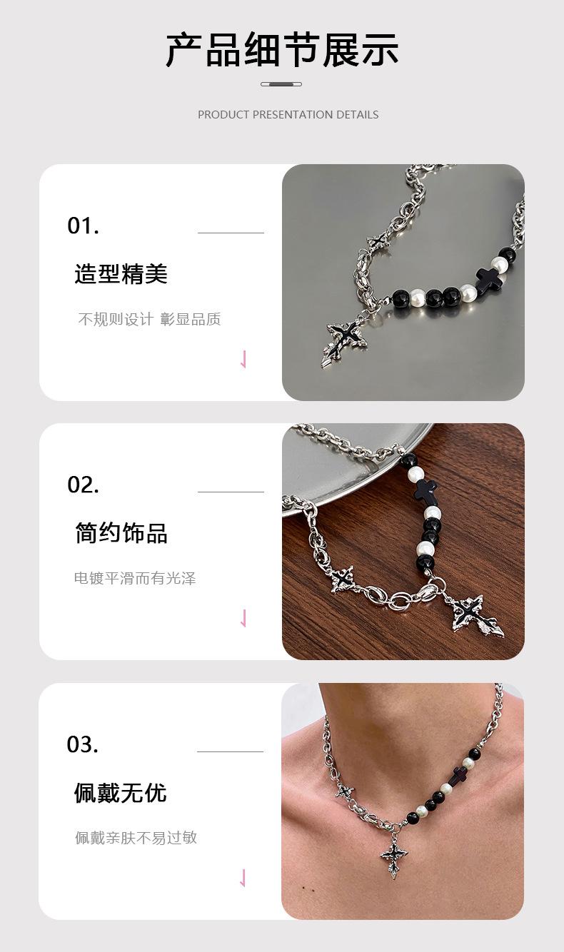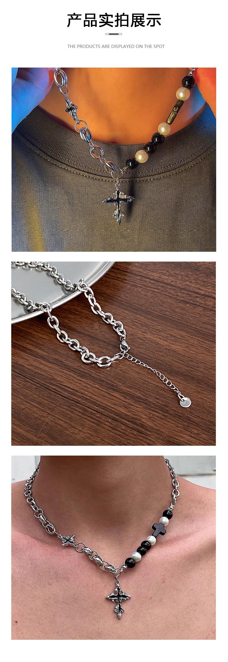 Collar de cruz para hombre con costuras en blanco y negro y cuentas, accesorios de nicho sencillos de alta gama para mujer, joyería nueva que combina con todo tipo de estilos de hip-hop.
