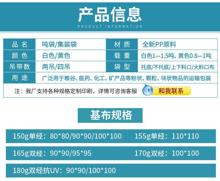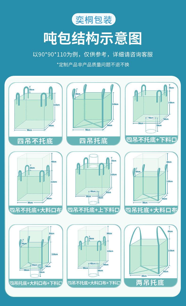 Bolsa de tonelada blanca con cojinete de prepresión de 1,5 toneladas de espesor, resistente al desgaste, bolsa contenedor de cuatro grúas, bolsa espacial, bolsa de toneladas de lodos, venta al por mayor