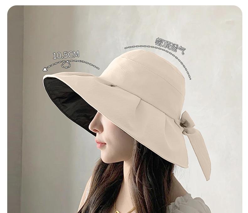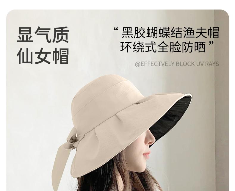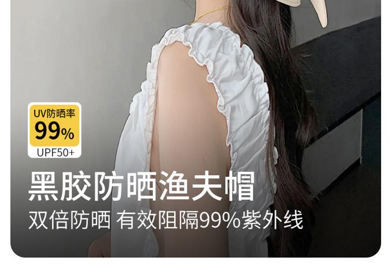 Sombrero de sol de goma negra para mujer, novedad de 2023, sombrero de verano para exteriores con protección UV, transpirable, con lazo, sombrero de pescador.
