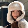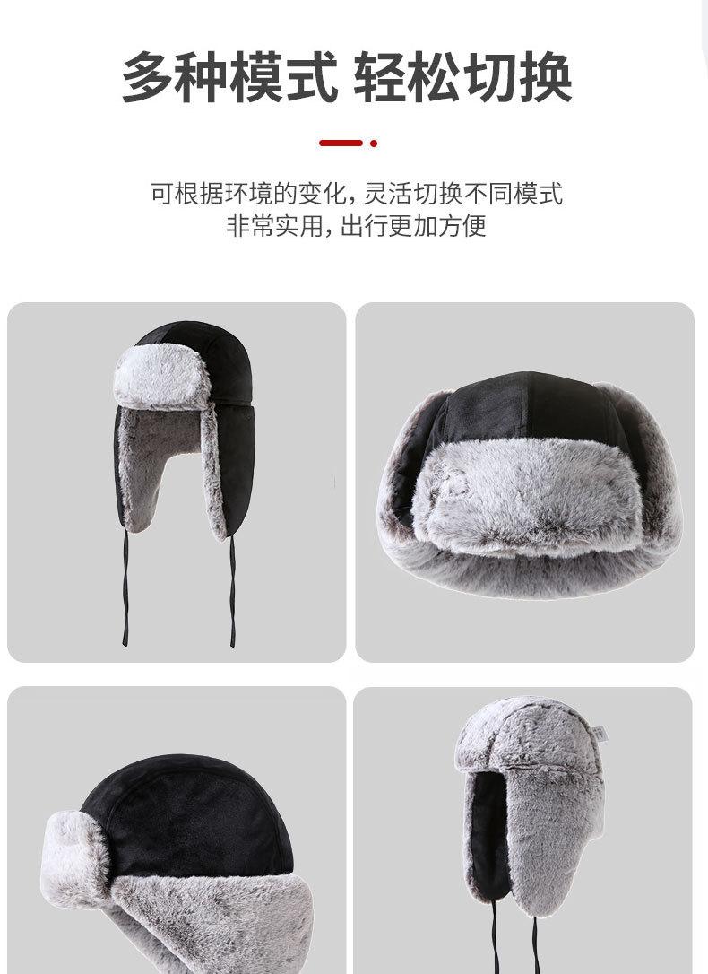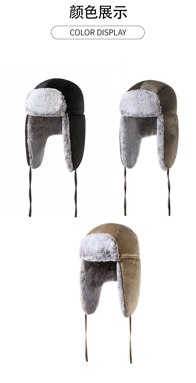 Gorra de terciopelo cálida para otoño e invierno con protección para los oídos, gorra Lei Feng para hombre y mujer, gorra gruesa a prueba de frío, gorra de piloto para esquiar a prueba de viento y frío.