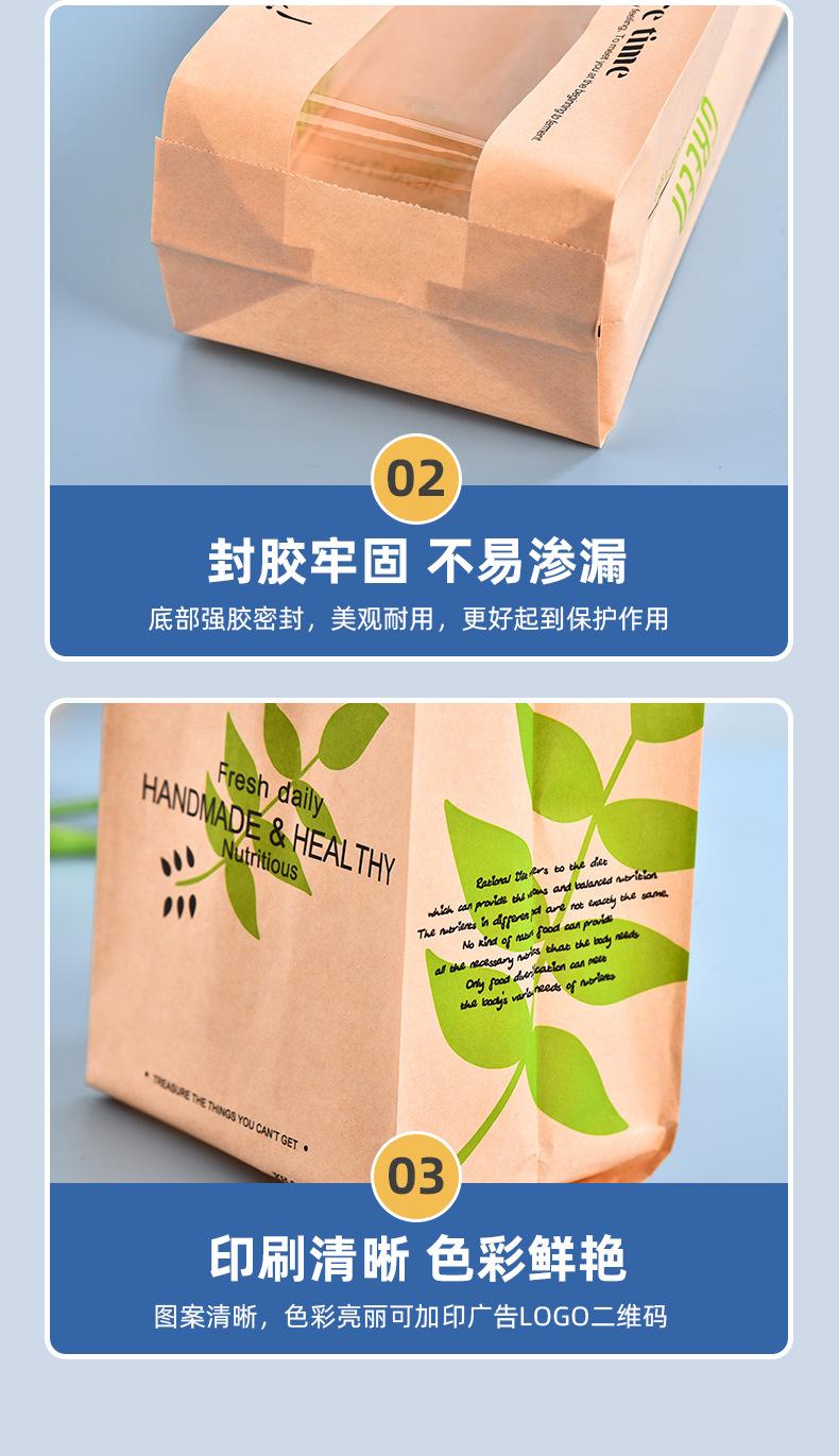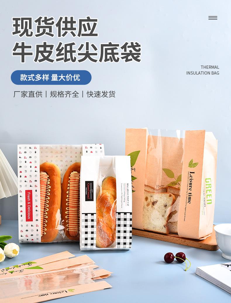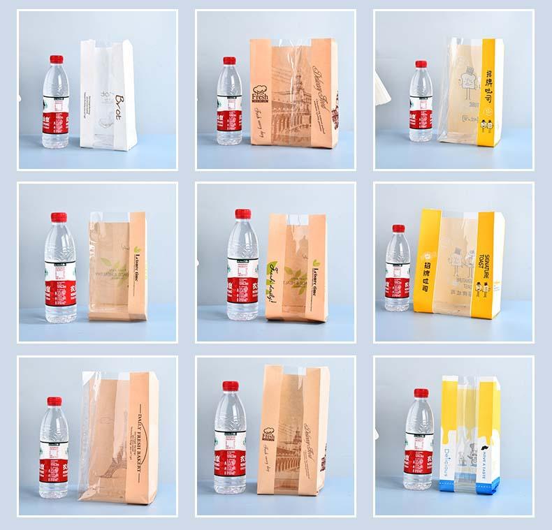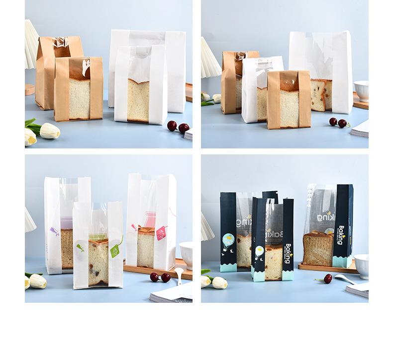 Bolsa de papel kraft transparente con ventana abierta para hornear pan tostado, bolsa de embalaje con película de lixiviación West Point, bolsa de papel a prueba de aceite, personalización