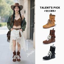 Botas Vaqueras Occidentales Retro de Punta 2025 Otoño/Invierno Nuevo Estilo Británico Casual Versátiles Botines Botas Myllard Mujer