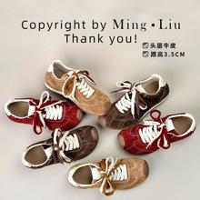 Zapatos German Trainer de Piel Vacuna de Grano Superior 2025 Otoño Nuevo Estilo Zapatos de Mujer Versátiles Deportivos Zapatos Forrest Gump Zapatos Casuales Retro Mujer
