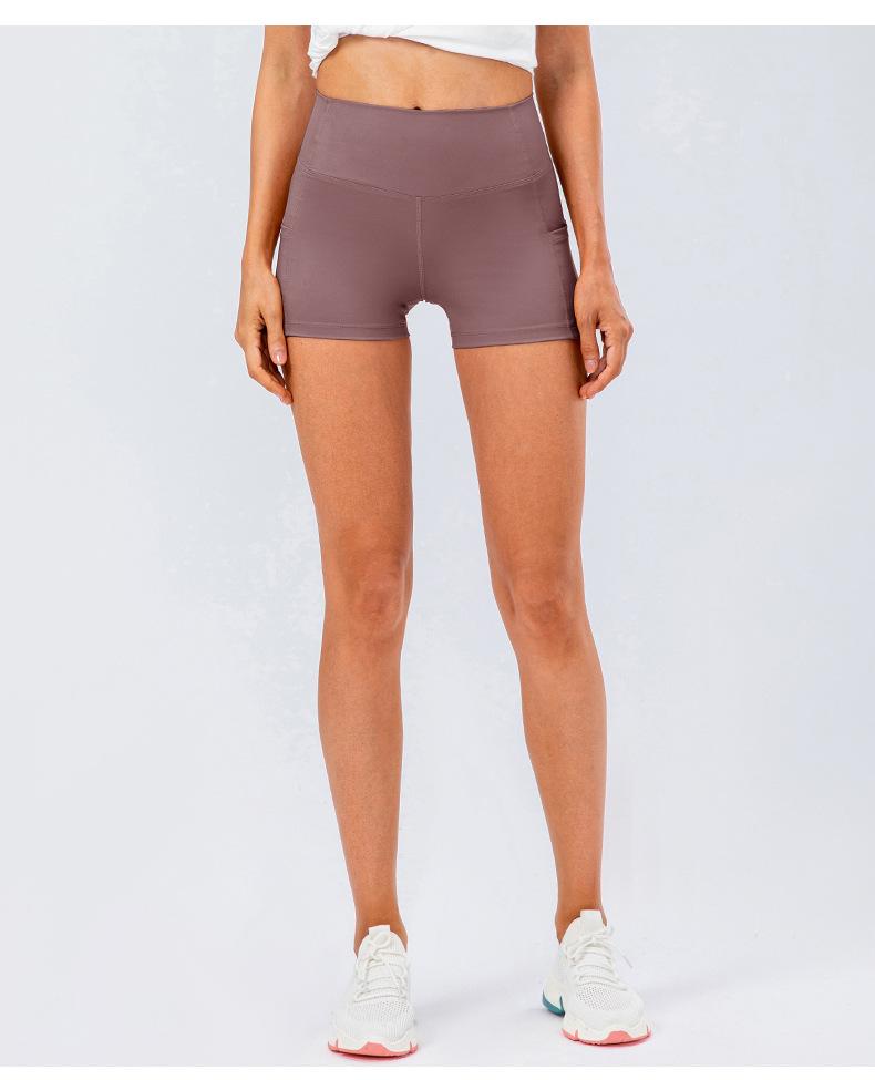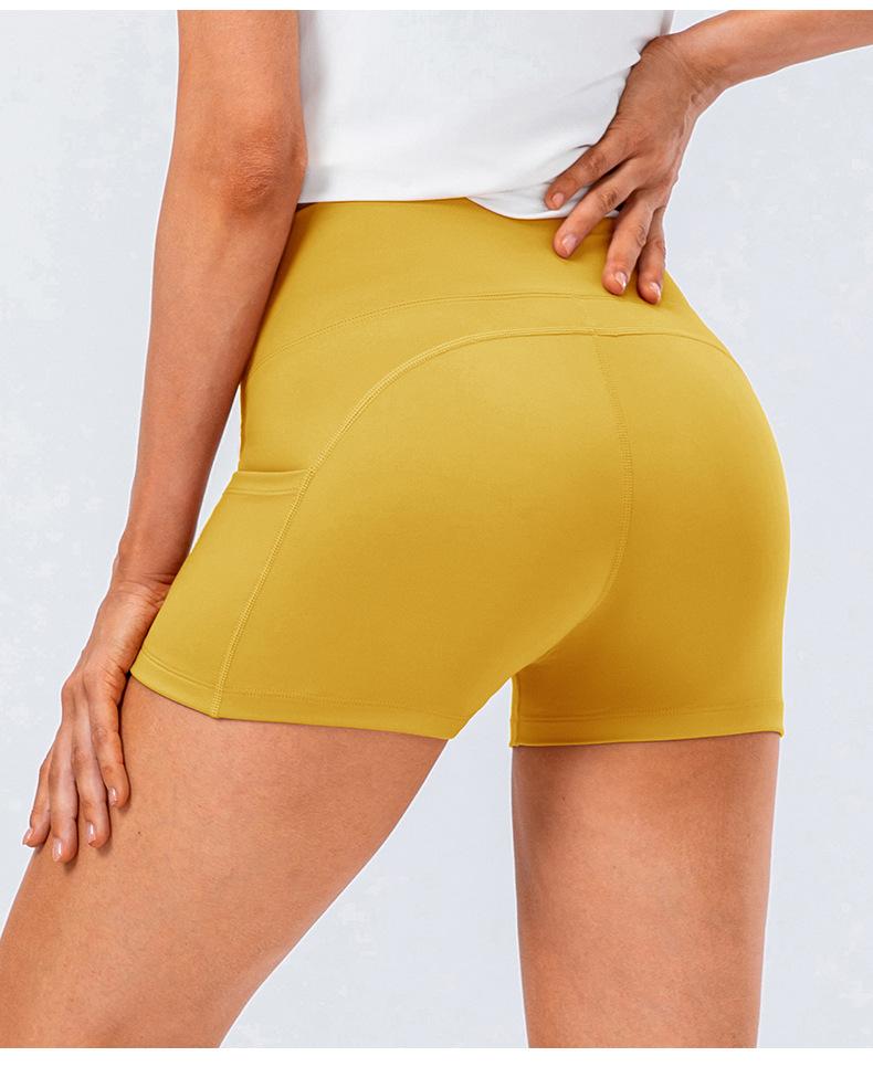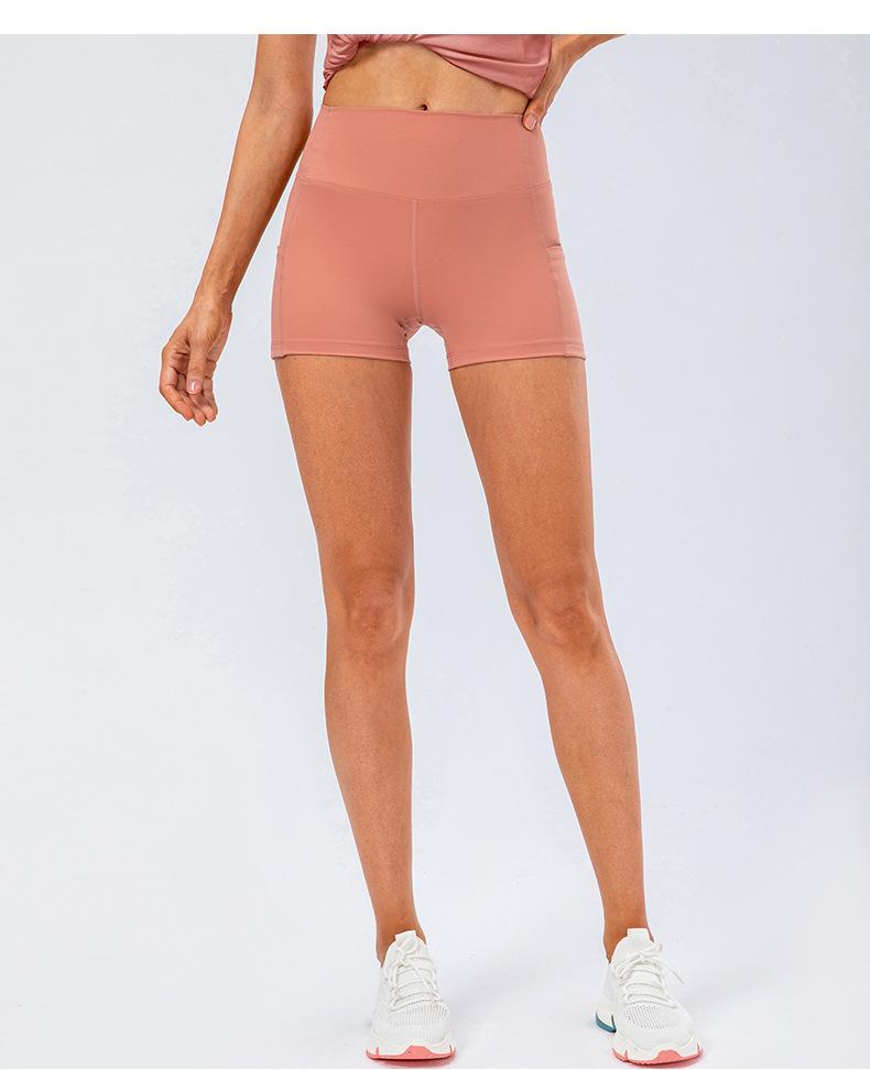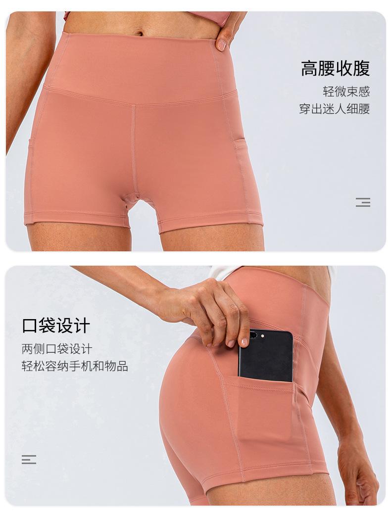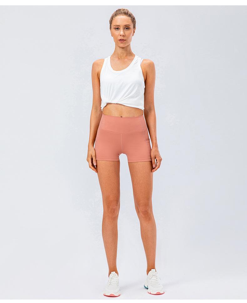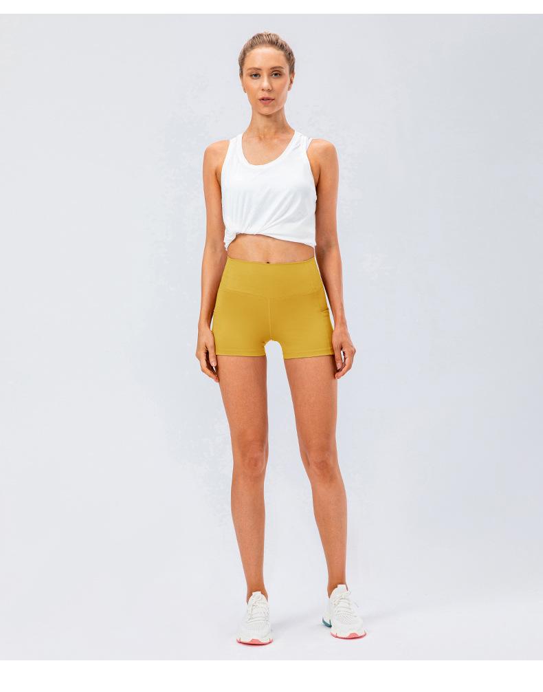 Pantalones de Yoga de Verano para Mujer Tres Puntos Cintura Alta Ajustados para Correr Entrenamiento Fitness Sensación Nude Suave Elástico Shorts Deportivos 12428