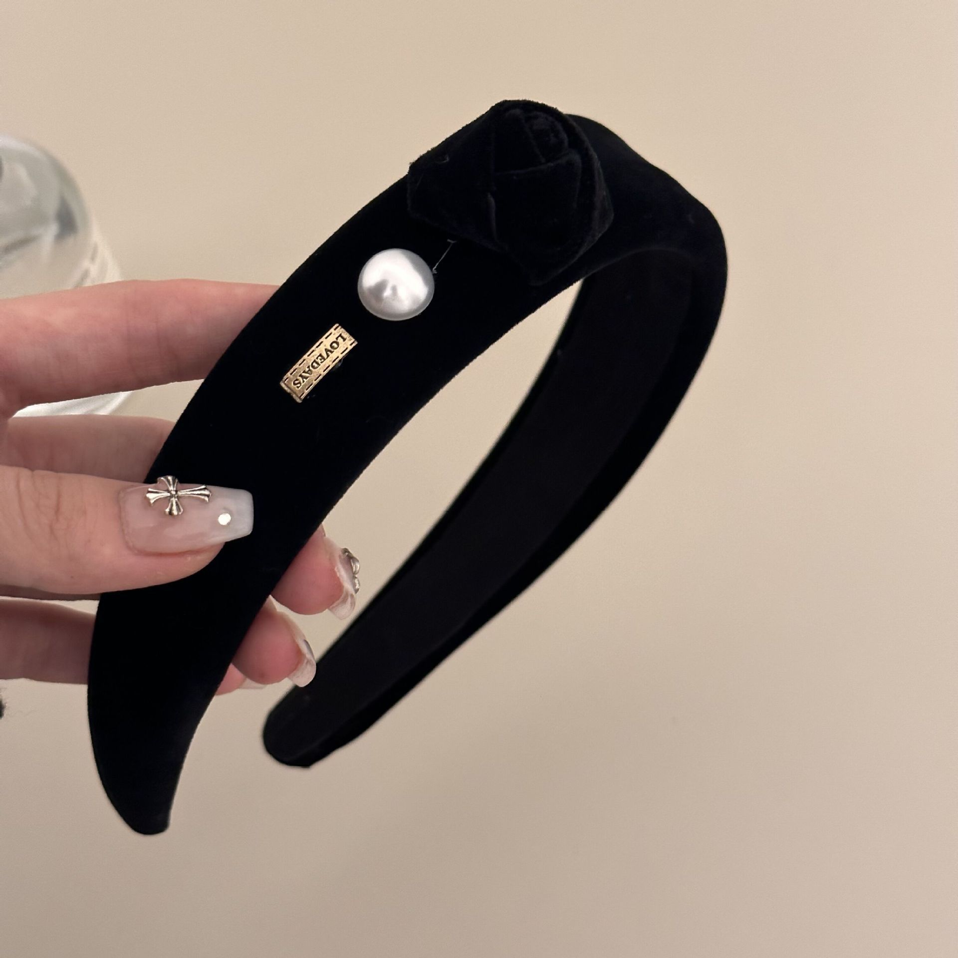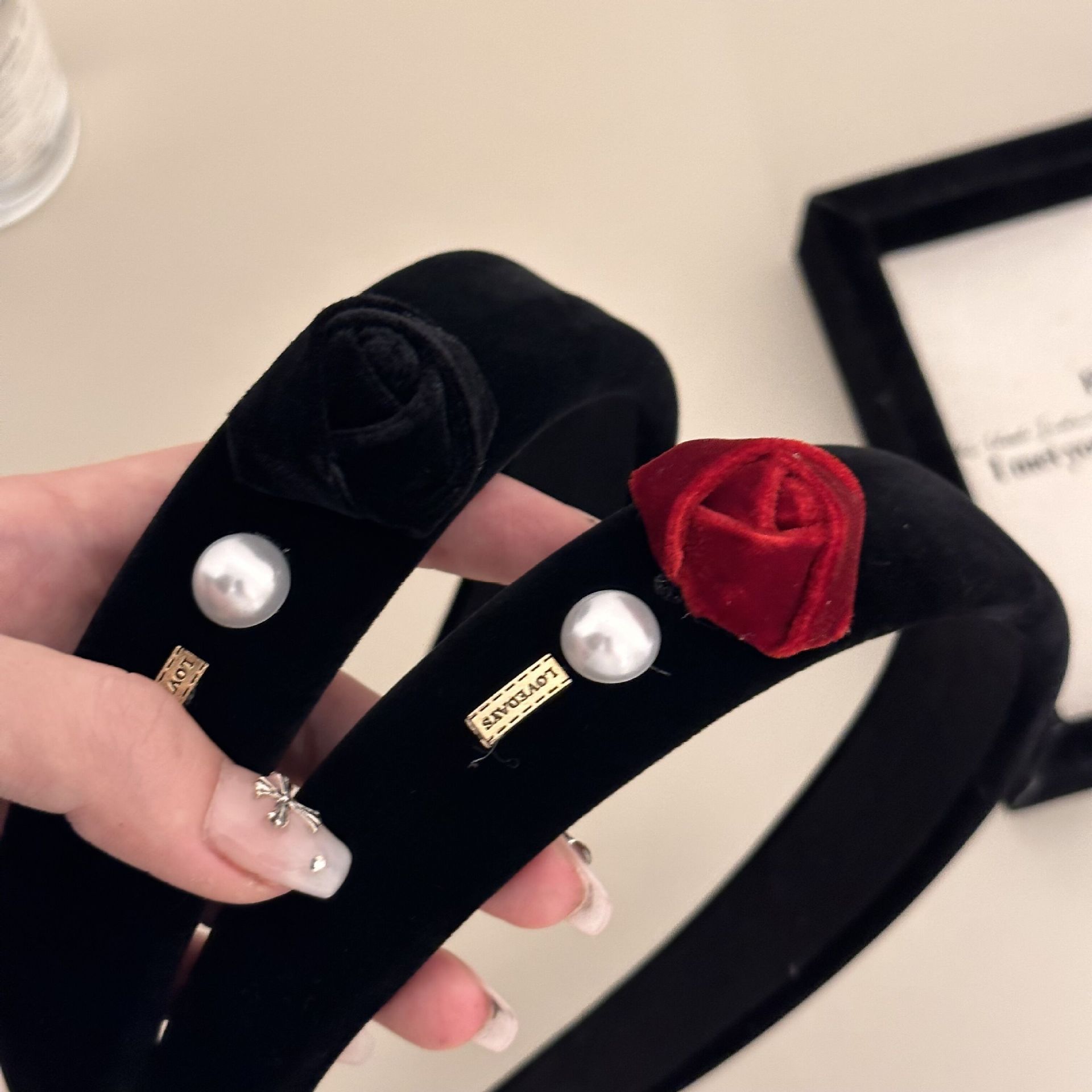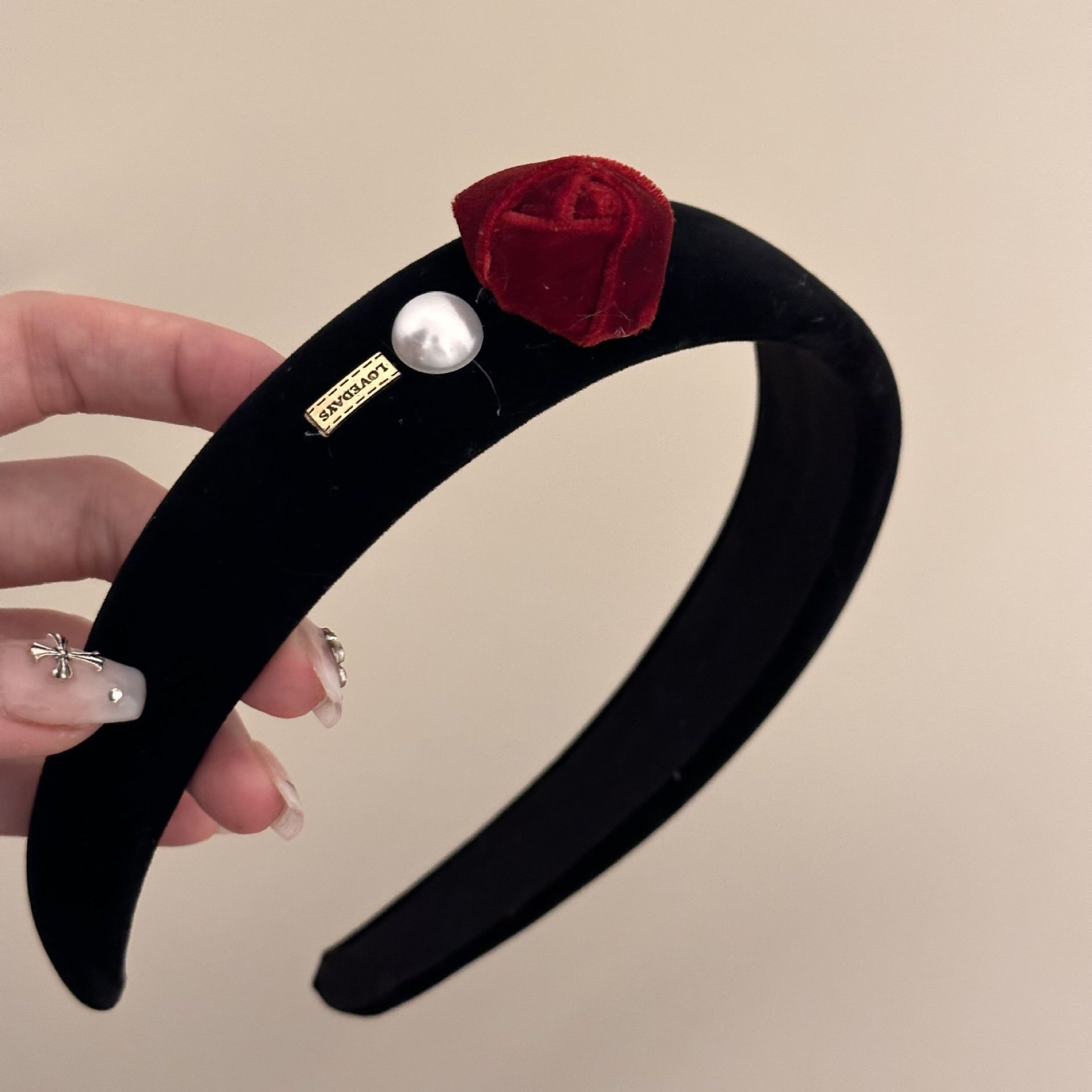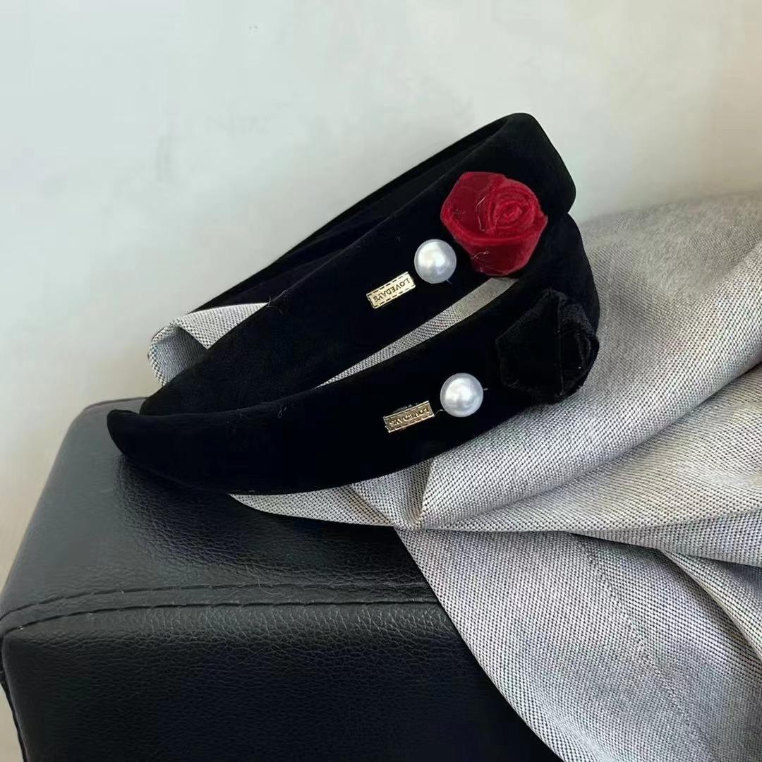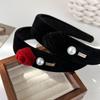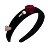 Diadema de Terciopelo Negro y Rojo con Perlas Diadema Dulce y Versátil Diadema de Alta Presión para el Cráneo Accesorios para el Cabello Venta al por Mayor Personalización