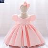 Vestido de Bebé Amazon Lazo Grande Encaje Boda Vestido de Princesa Bebé Un Año Vestido para Lavar Cinturón para el Cabello