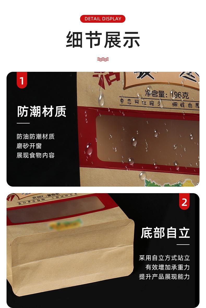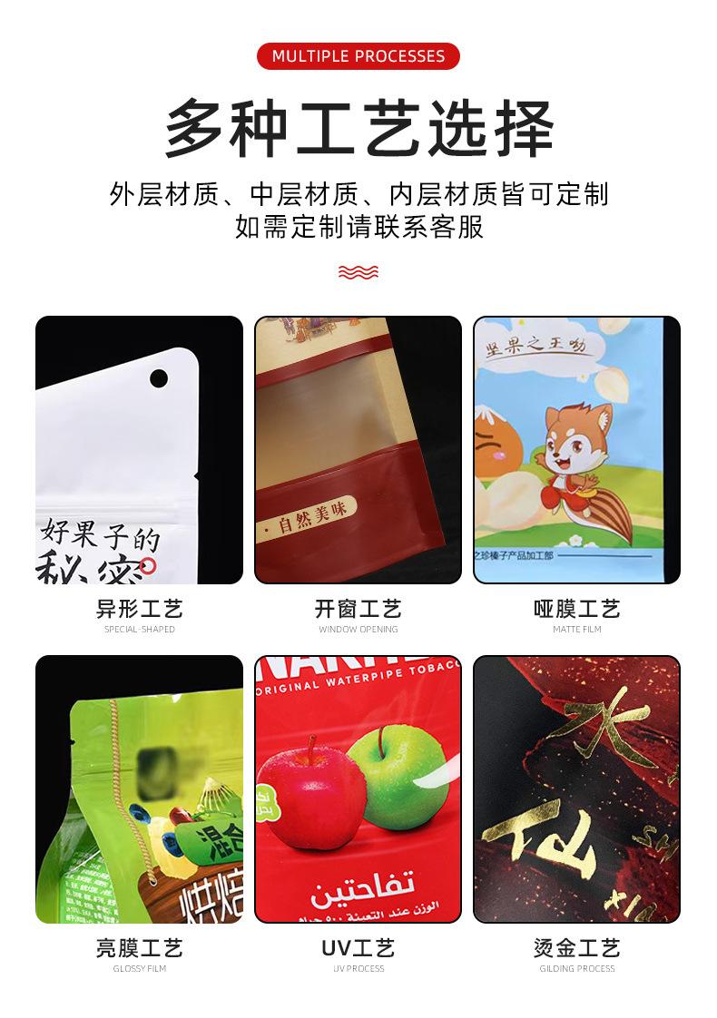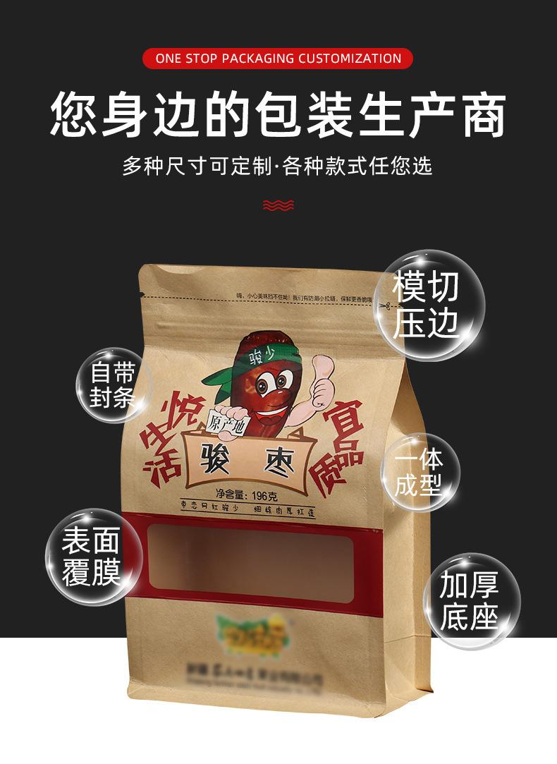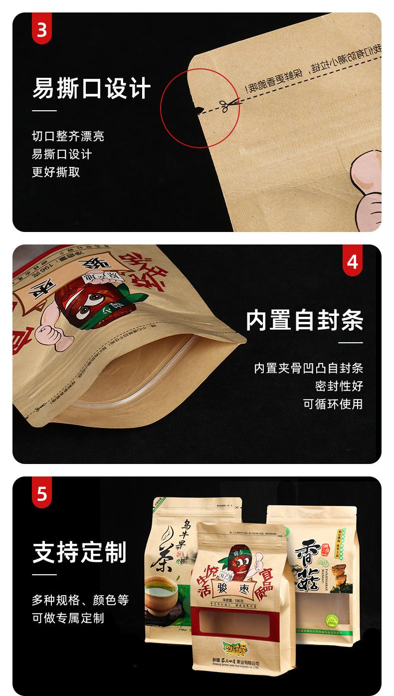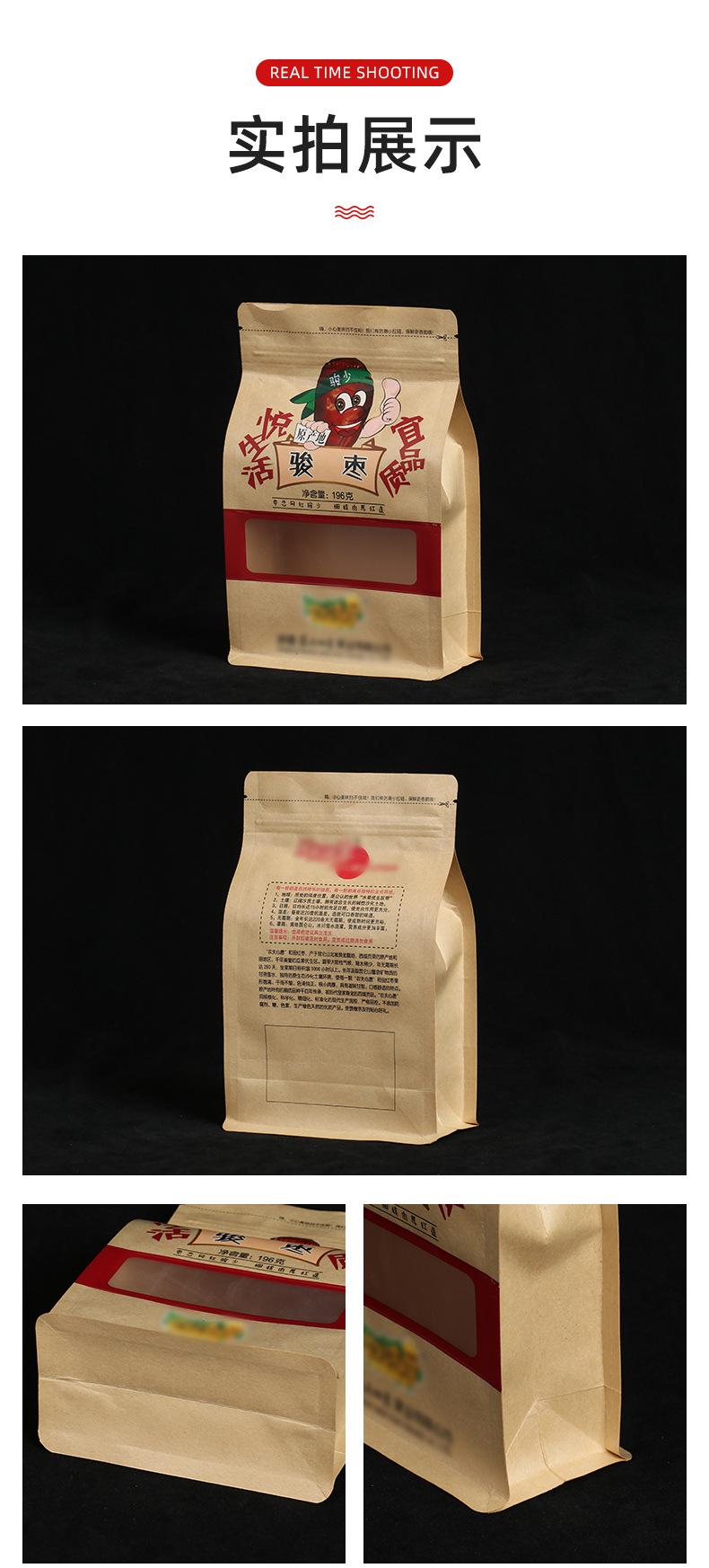 Bolsa de papel kraft con ventana para envasar alimentos, color gris, con cremallera, personalizada, para refrigerios, tés y logotipos.